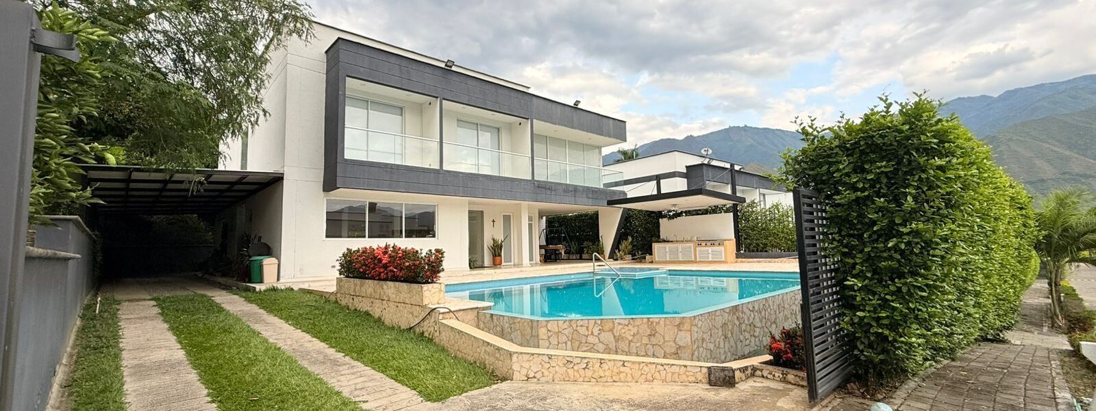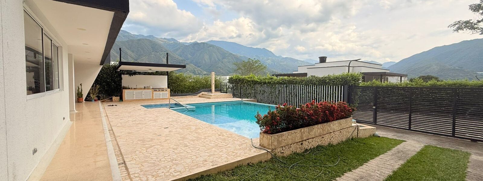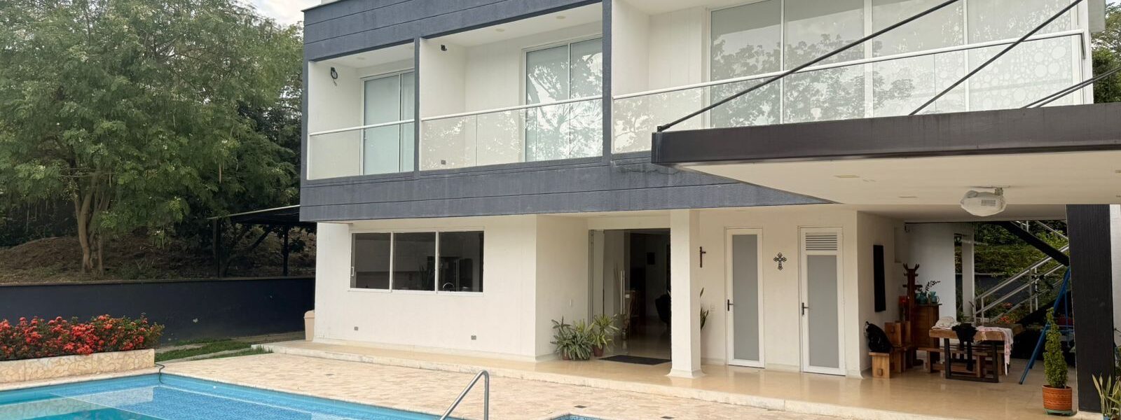 La Casa es moderna de dos niveles, cuenta con 6 alcobas con aire acondicionado, baño y vestier, cocina integral, zona de ropas, balcón, sala comedor , piscina, sauna, turco, jacuzzy y kiosco.