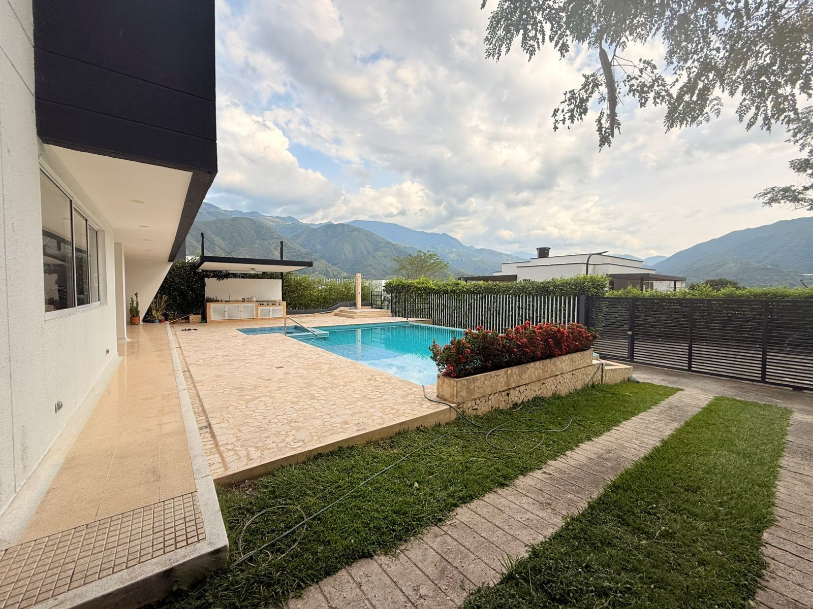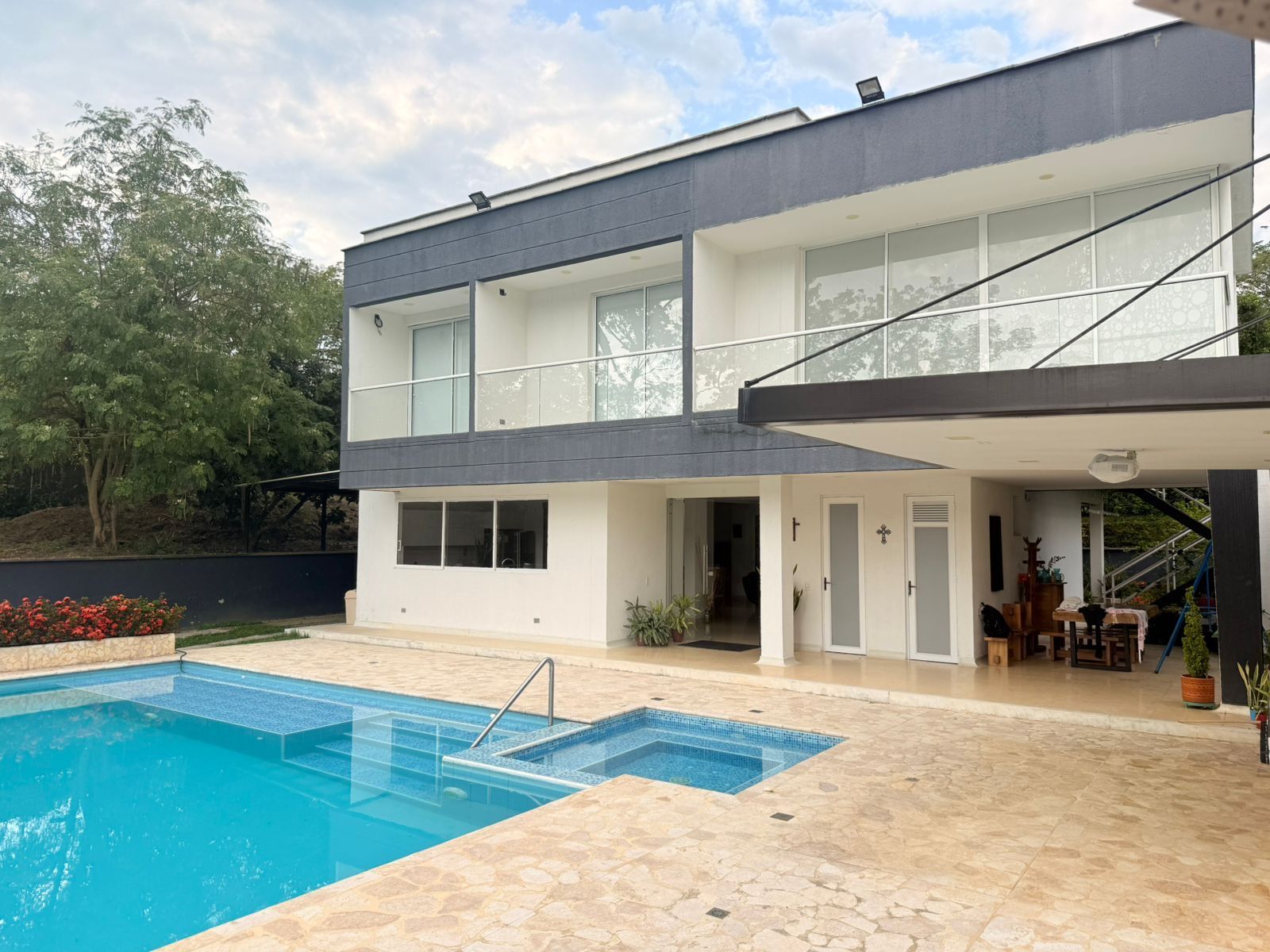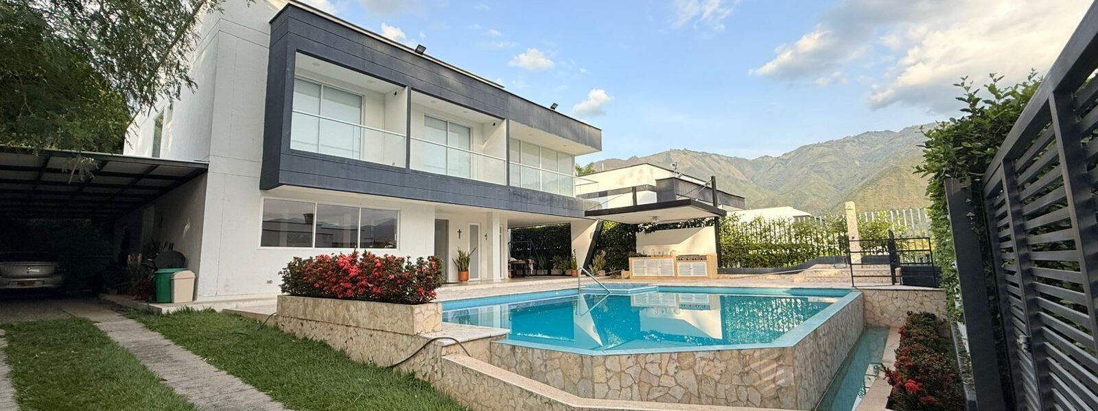 La Casa es moderna de dos niveles, cuenta con 6 alcobas con aire acondicionado, baño y vestier, cocina integral, zona de ropas, balcón, sala comedor , piscina, sauna, turco, jacuzzy y kiosco.