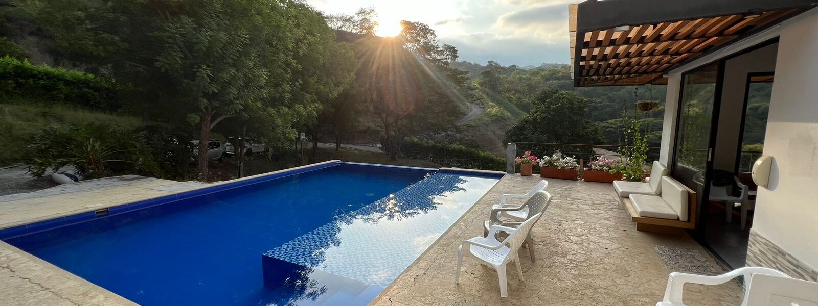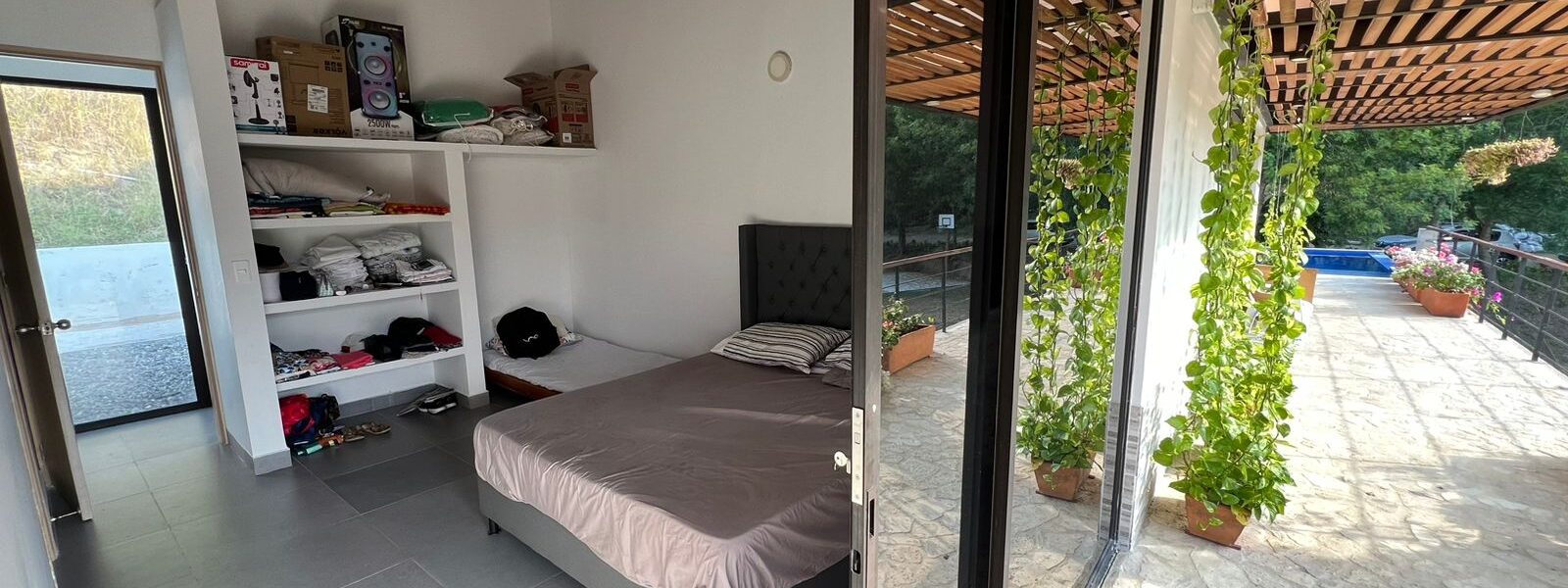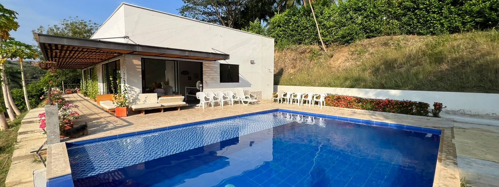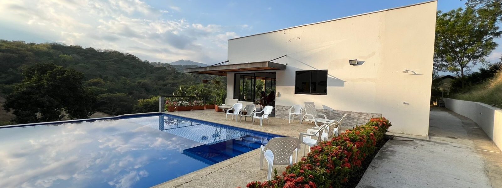 La Finca tiene una Casa muy cómoda , cuenta con 3 alcobas con aire acondicionado y vestier, 3 baños, sala comedor, cocina integral, zona de ropas, balcón con muy buena vista, piscina, y zona verde.