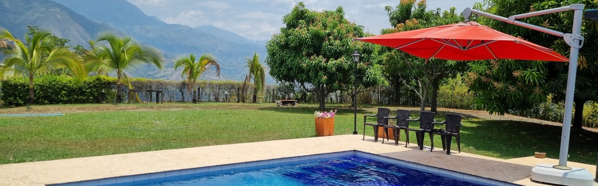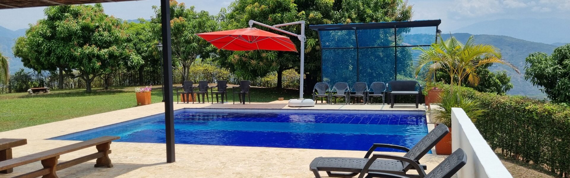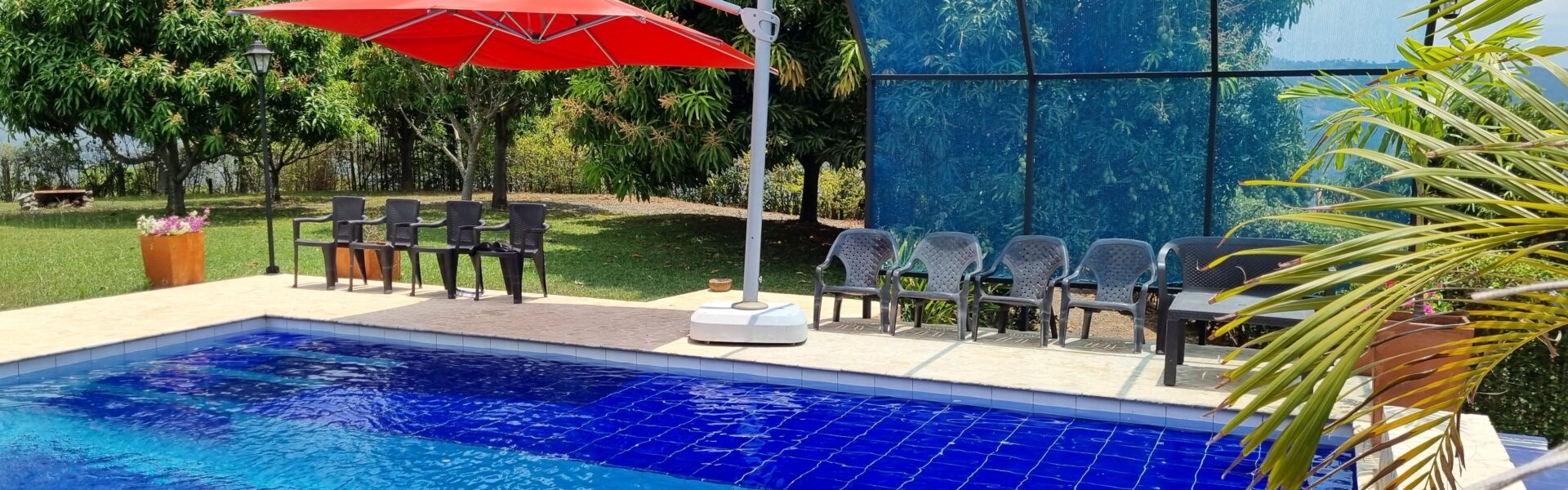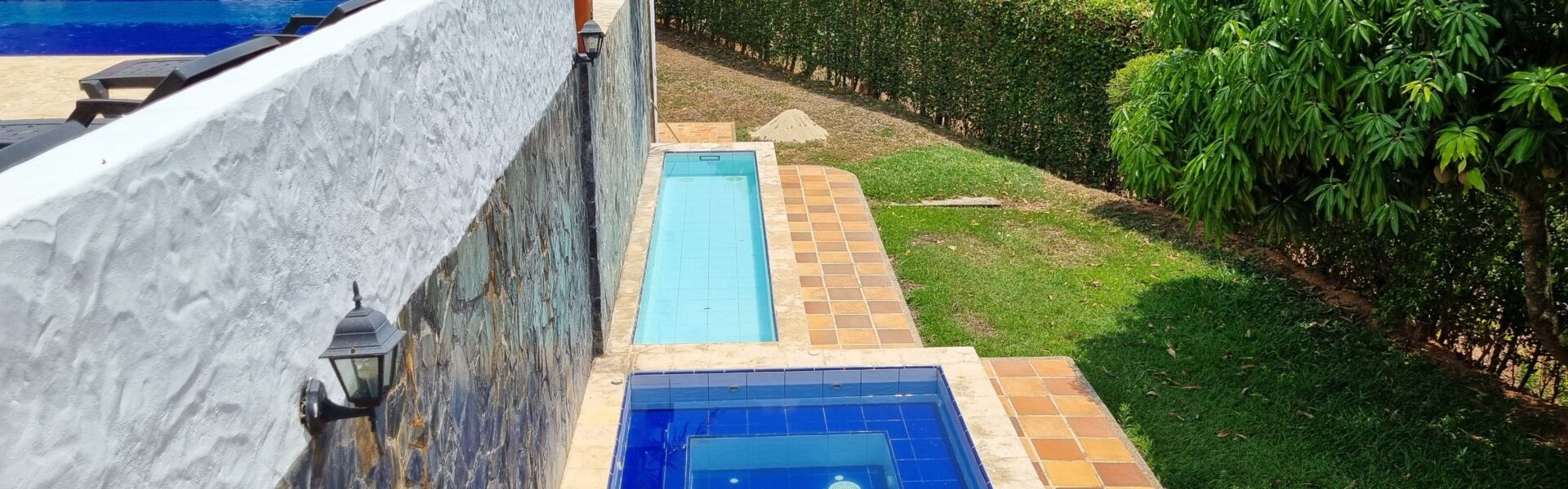 La Finca tiene una Casa muy cómoda con espacios amplios, cuenta con 6 alcobas con baño y vestier, cocina integral, zona de ropas, sala comedor independiente, comedor auxiliar, piscina, Jacuzy, turco, terraza, arboles frutales en producción, parqueadero para 8 vehículos.