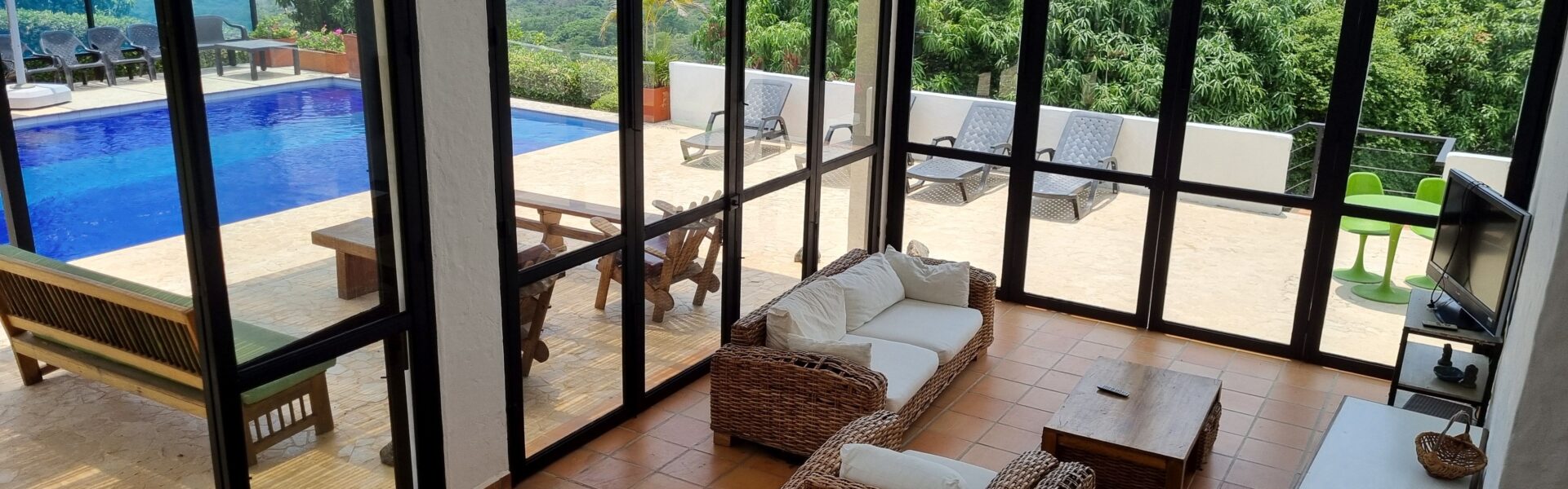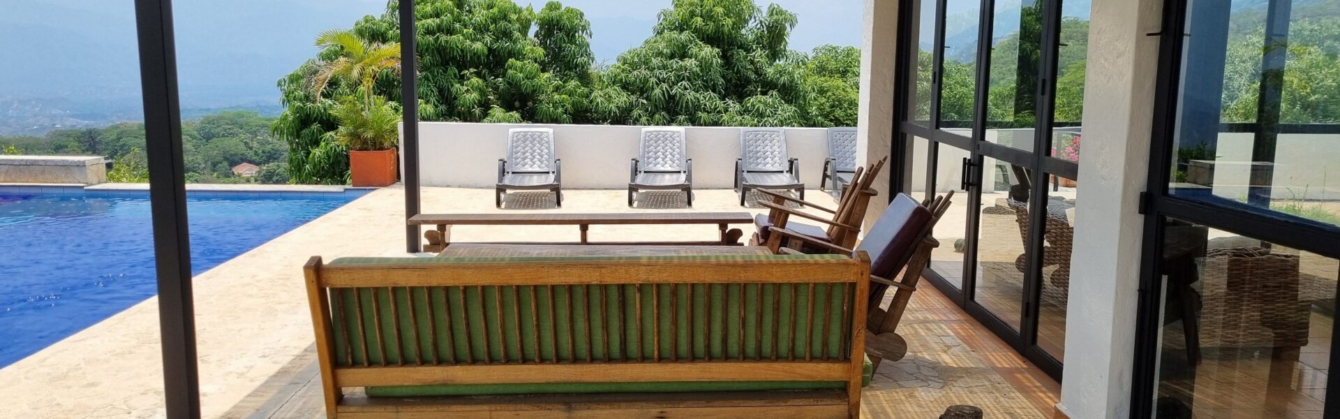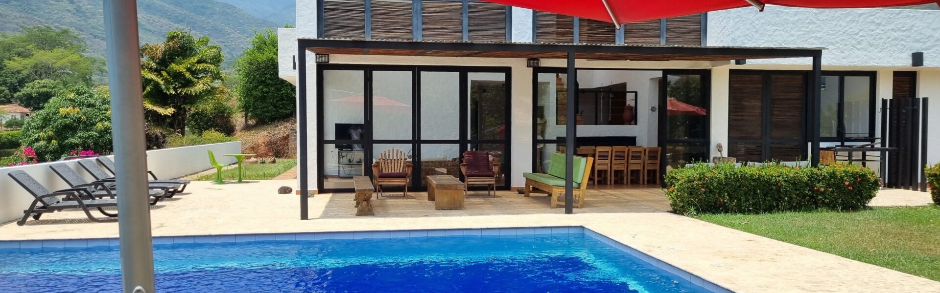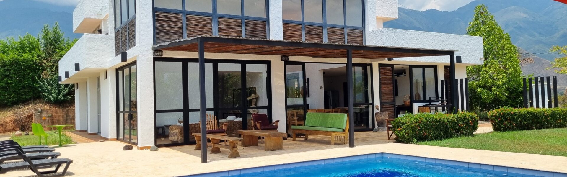 La Finca tiene una Casa muy cómoda con espacios amplios, cuenta con 6 alcobas con baño y vestier, cocina integral, zona de ropas, sala comedor independiente, comedor auxiliar, piscina, Jacuzy, turco, terraza, arboles frutales en producción, parqueadero para 8 vehículos.