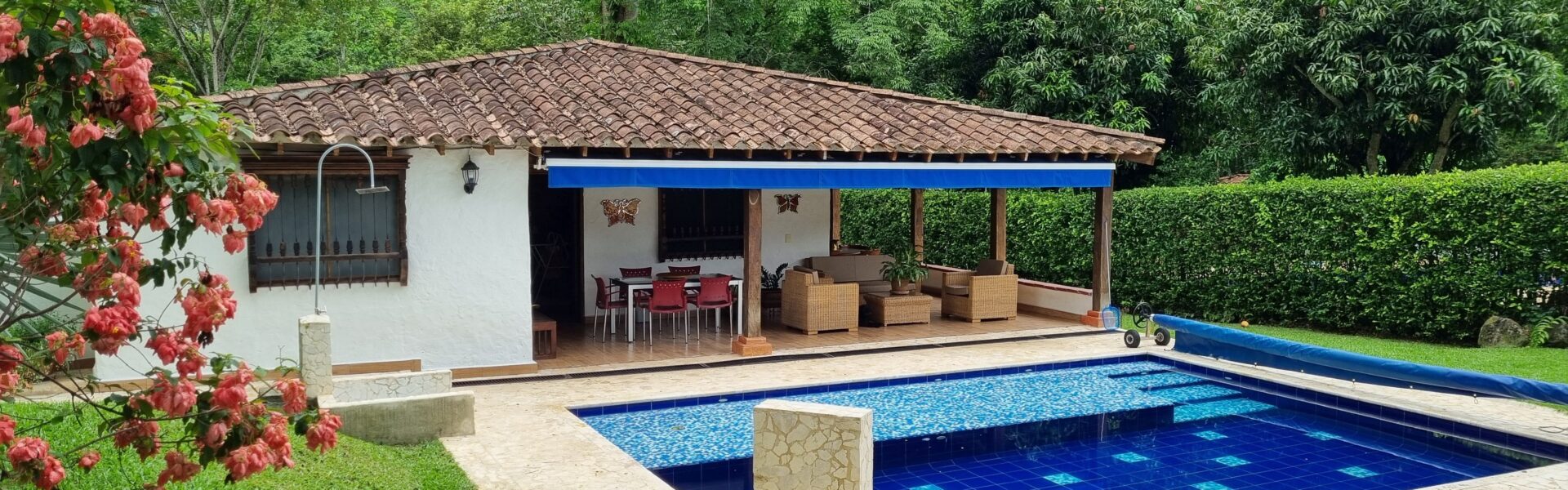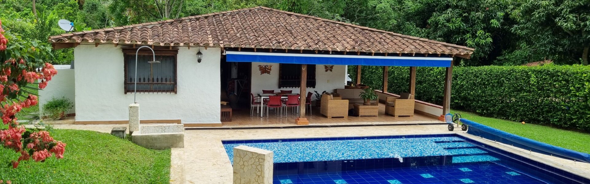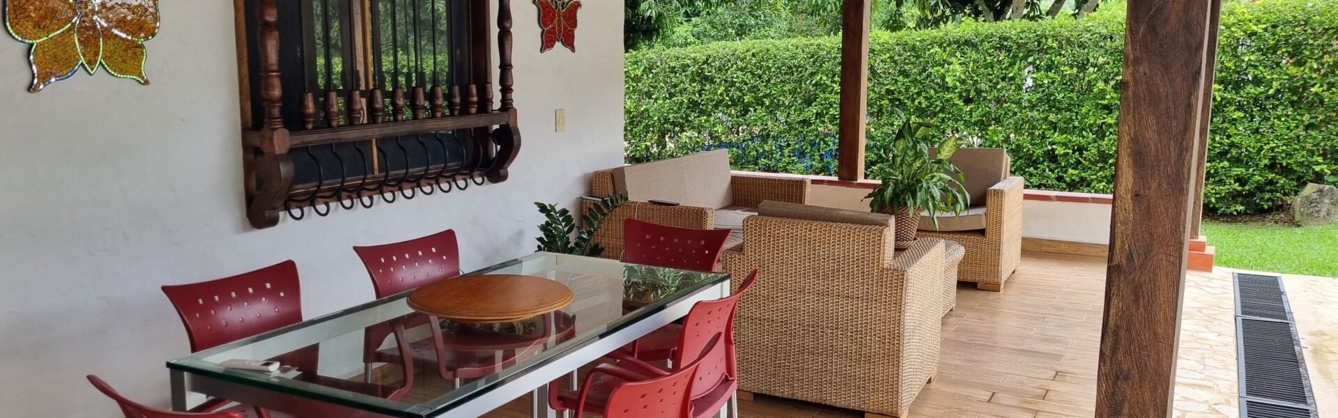 Tiene una Casa remodelada muy bonita de un solo nivel, cuenta con 3 alcobas, 3 baños, sala comedor independiente, cocina integral, zona de ropas, comedor auxiliar, corredores amplios, bellos jardines, kiosco , piscina , zona verde, topografia totalmente plana, arboles frutales en produccion y 3 aguas.
