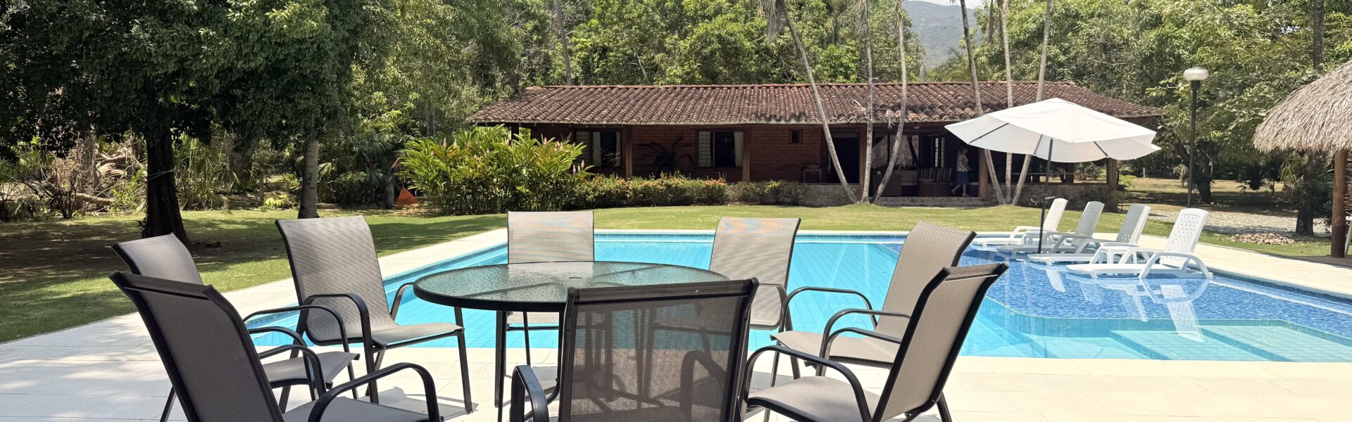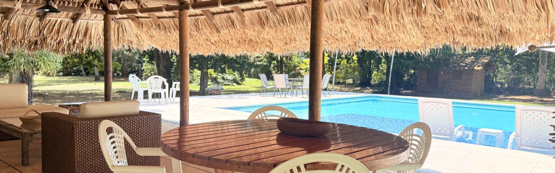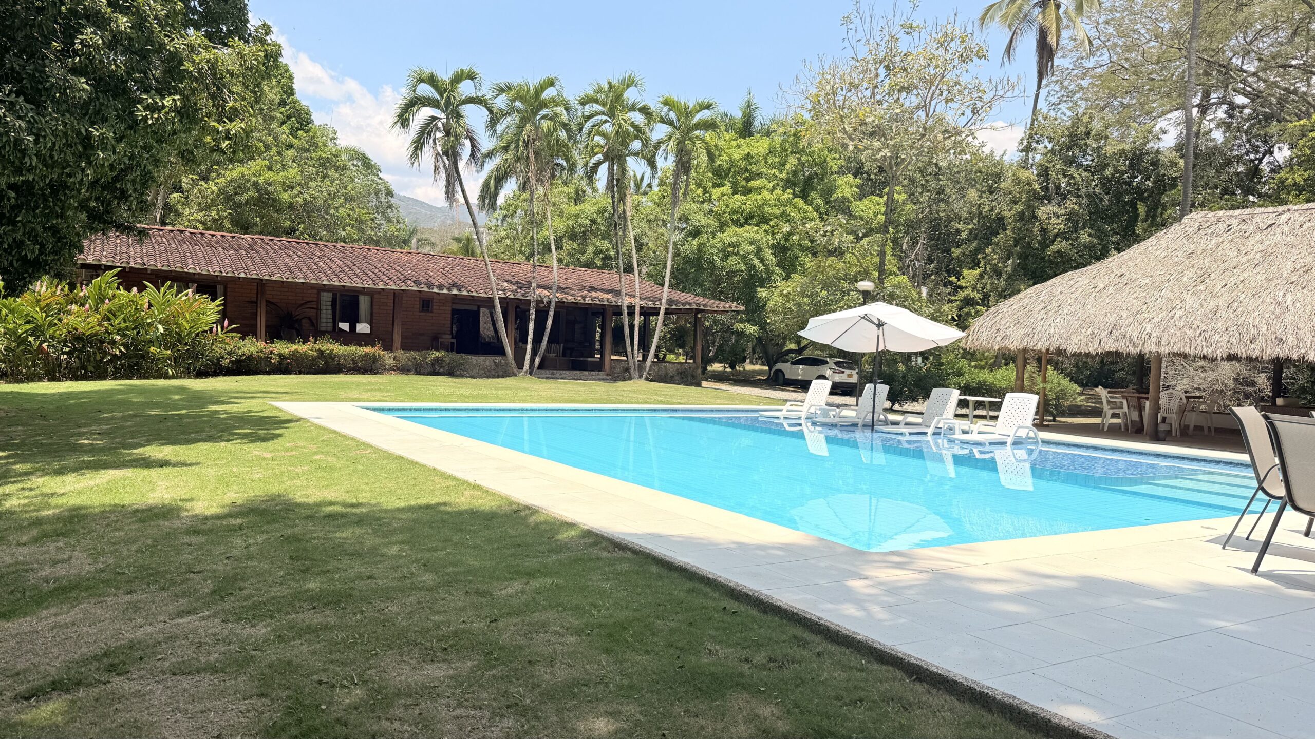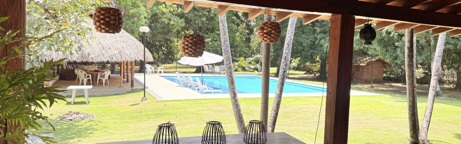La Finca tiene una Casa muy agradable de u solo nivel, 5 alcobas con aire acondicionado, baño vestier, cocina integral, zona de ropas, sala comedor independiente, corredores, bellos jardines, kiosco en paja, piscina, árboles frutales en producción, arboles maderables, topografía totalmente plana.