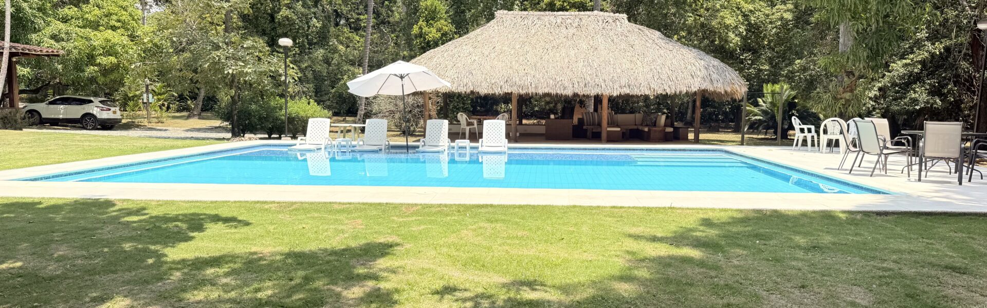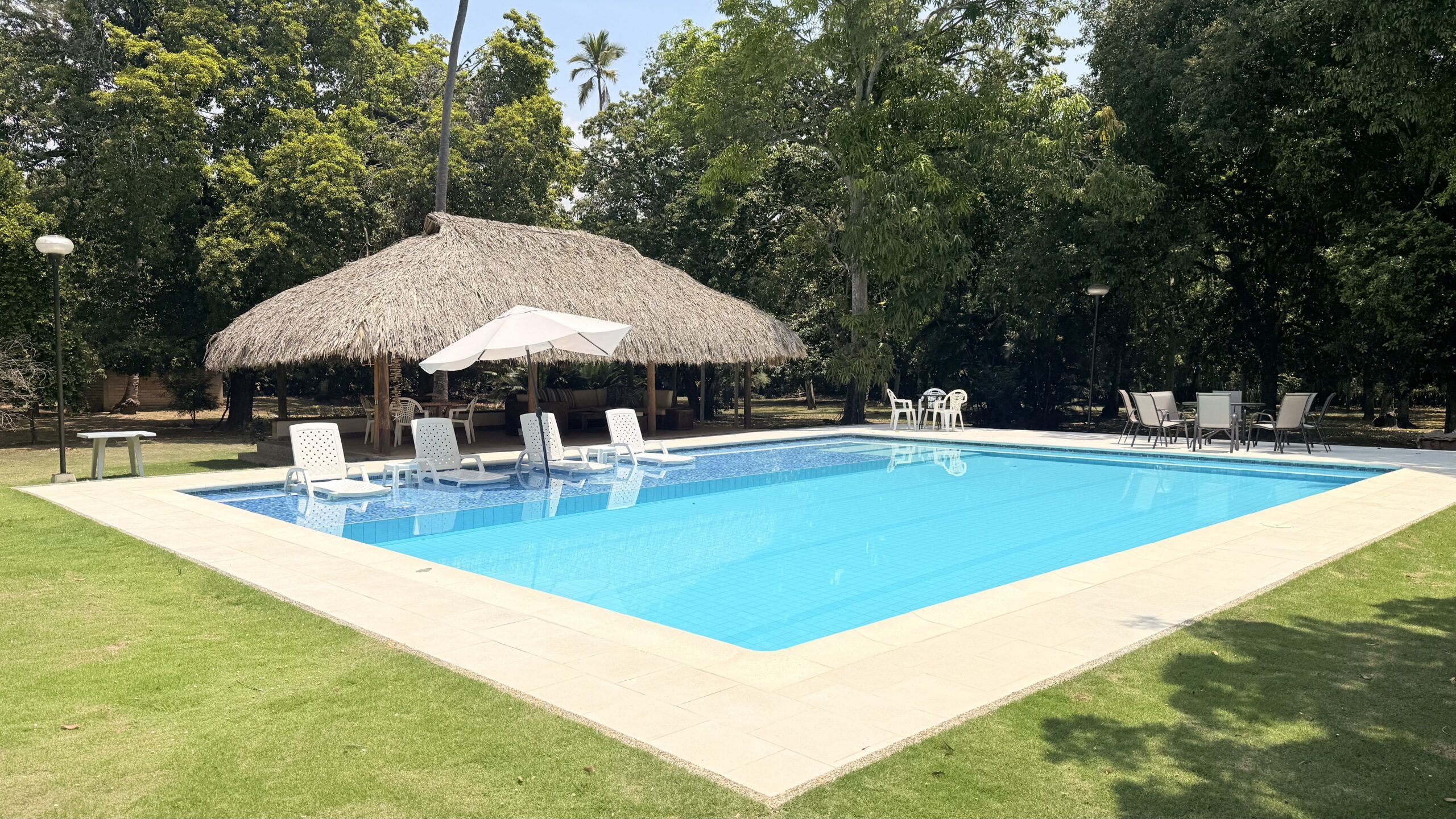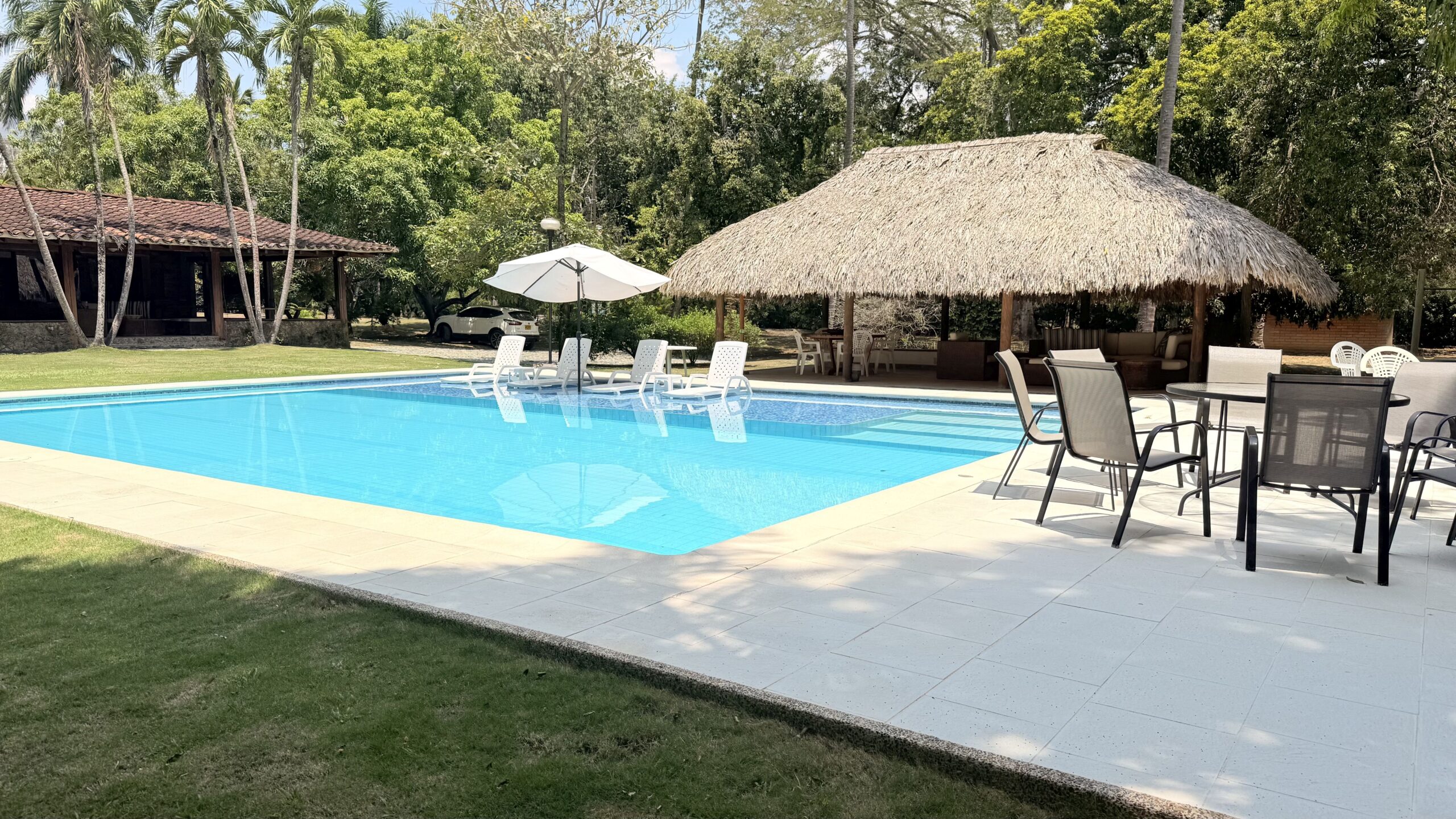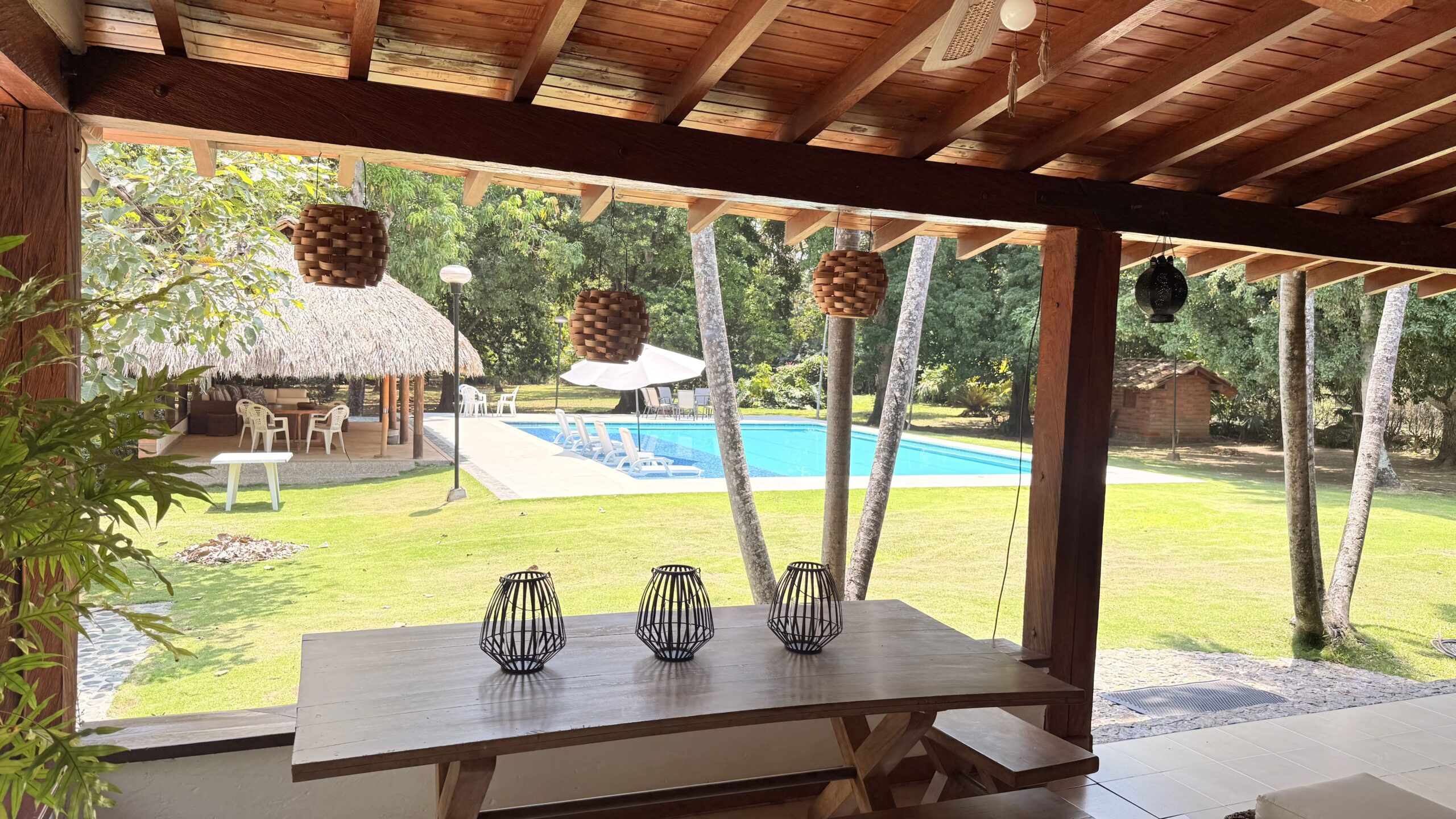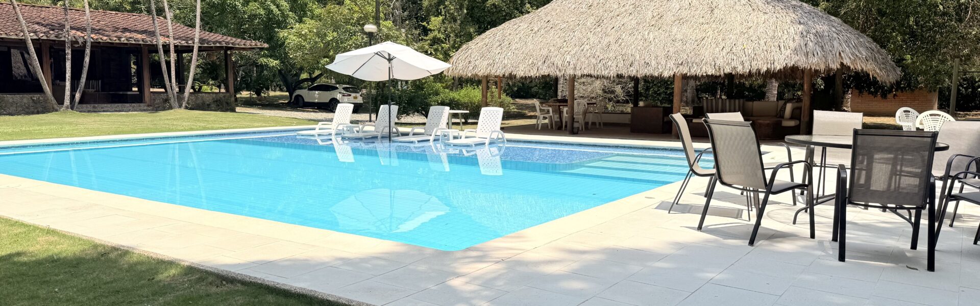 La Finca tiene una Casa muy agradable de u solo nivel, 5 alcobas con aire acondicionado, baño vestier, cocina integral, zona de ropas, sala comedor independiente, corredores, bellos jardines, kiosco en paja, piscina, árboles frutales en producción, arboles maderables, topografía totalmente plana.