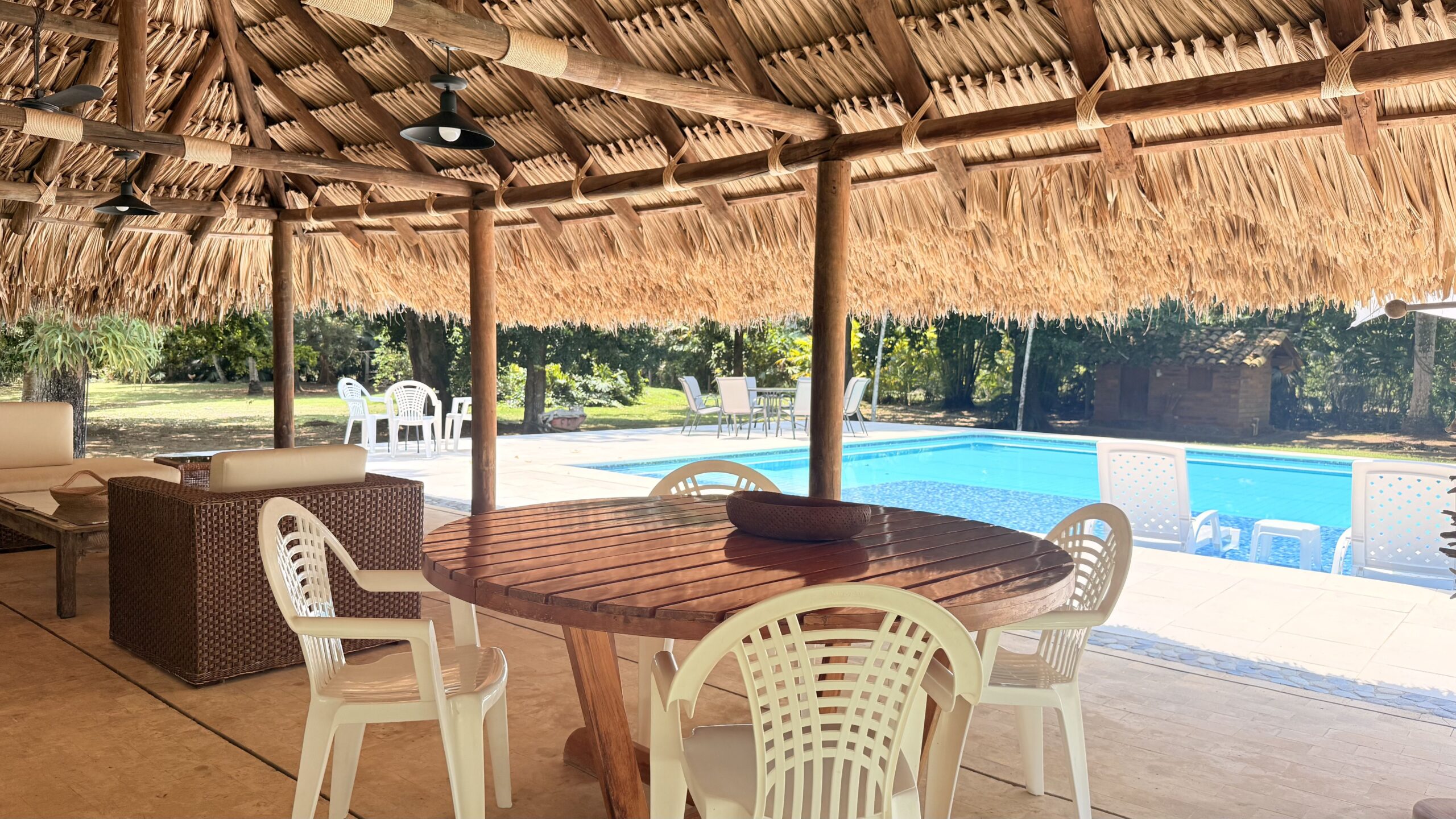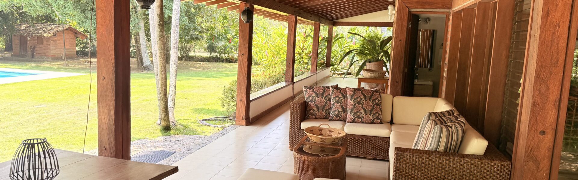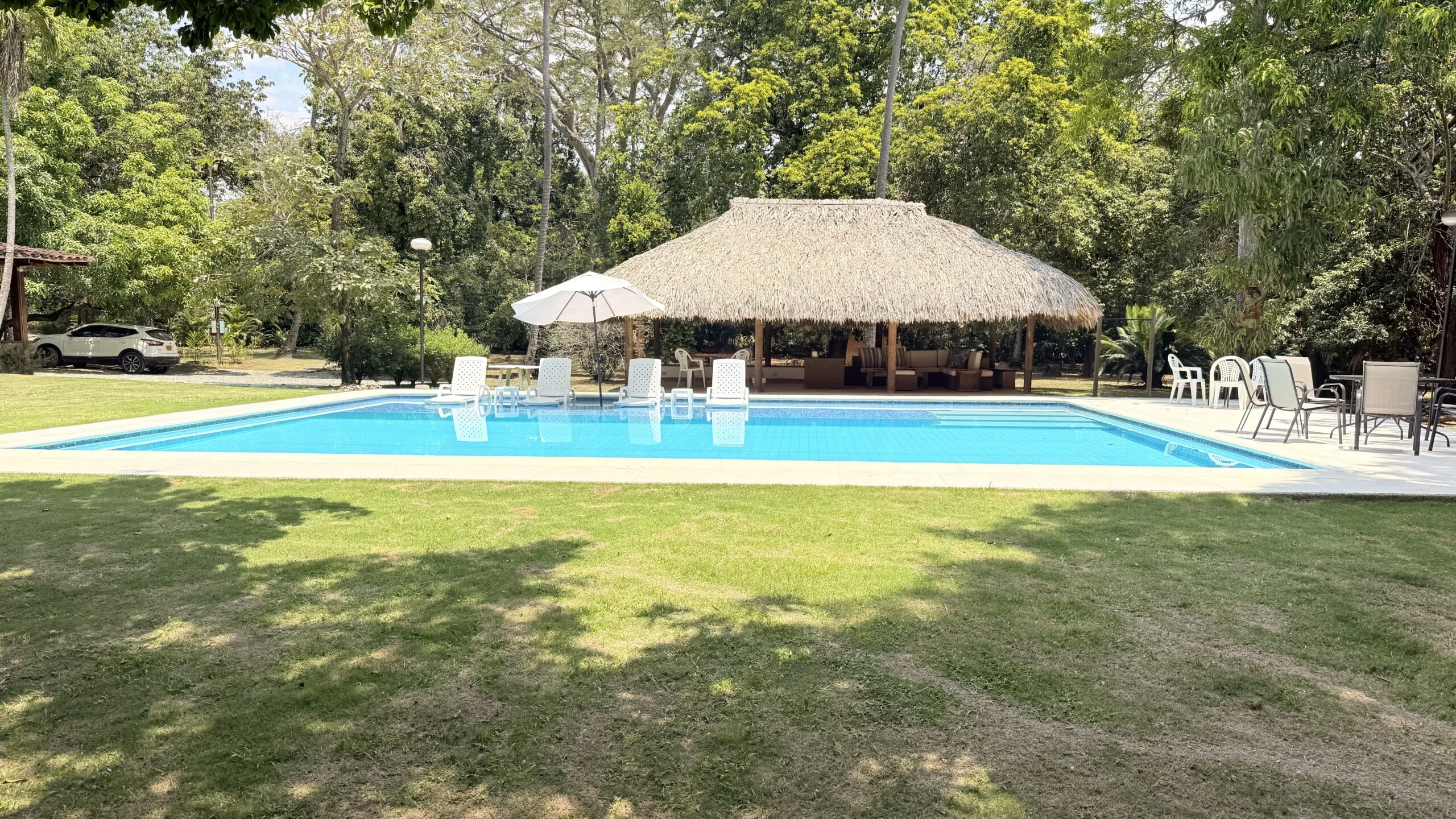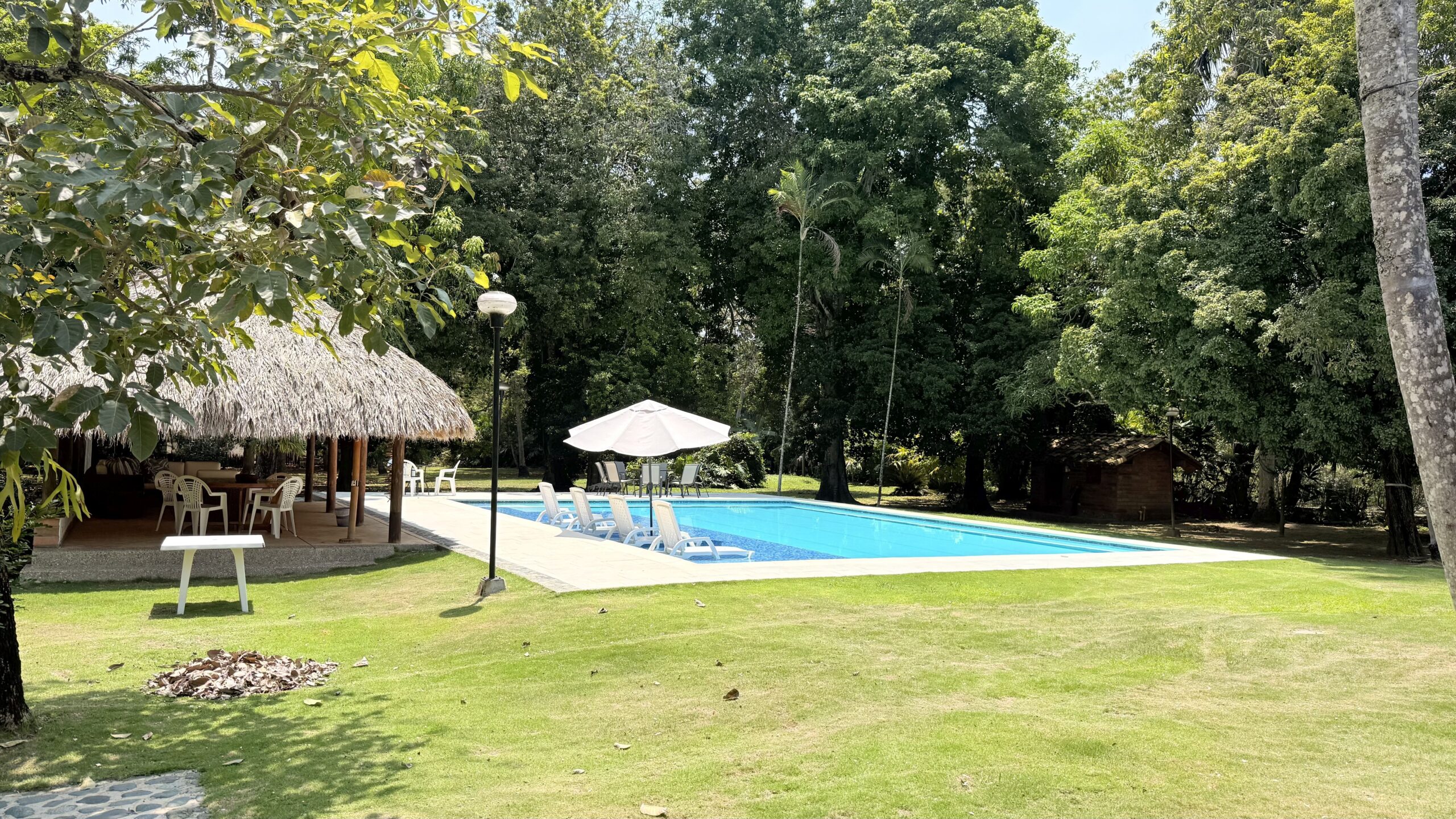 La Finca tiene una Casa muy agradable de u solo nivel, 5 alcobas con aire acondicionado, baño vestier, cocina integral, zona de ropas, sala comedor independiente, corredores, bellos jardines, kiosco en paja, piscina, árboles frutales en producción, arboles maderables, topografía totalmente plana.