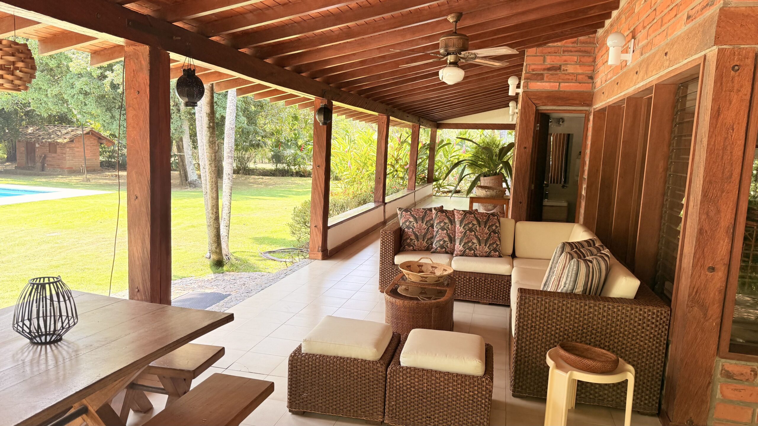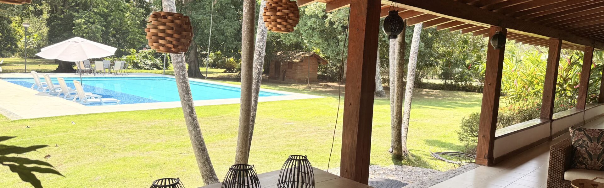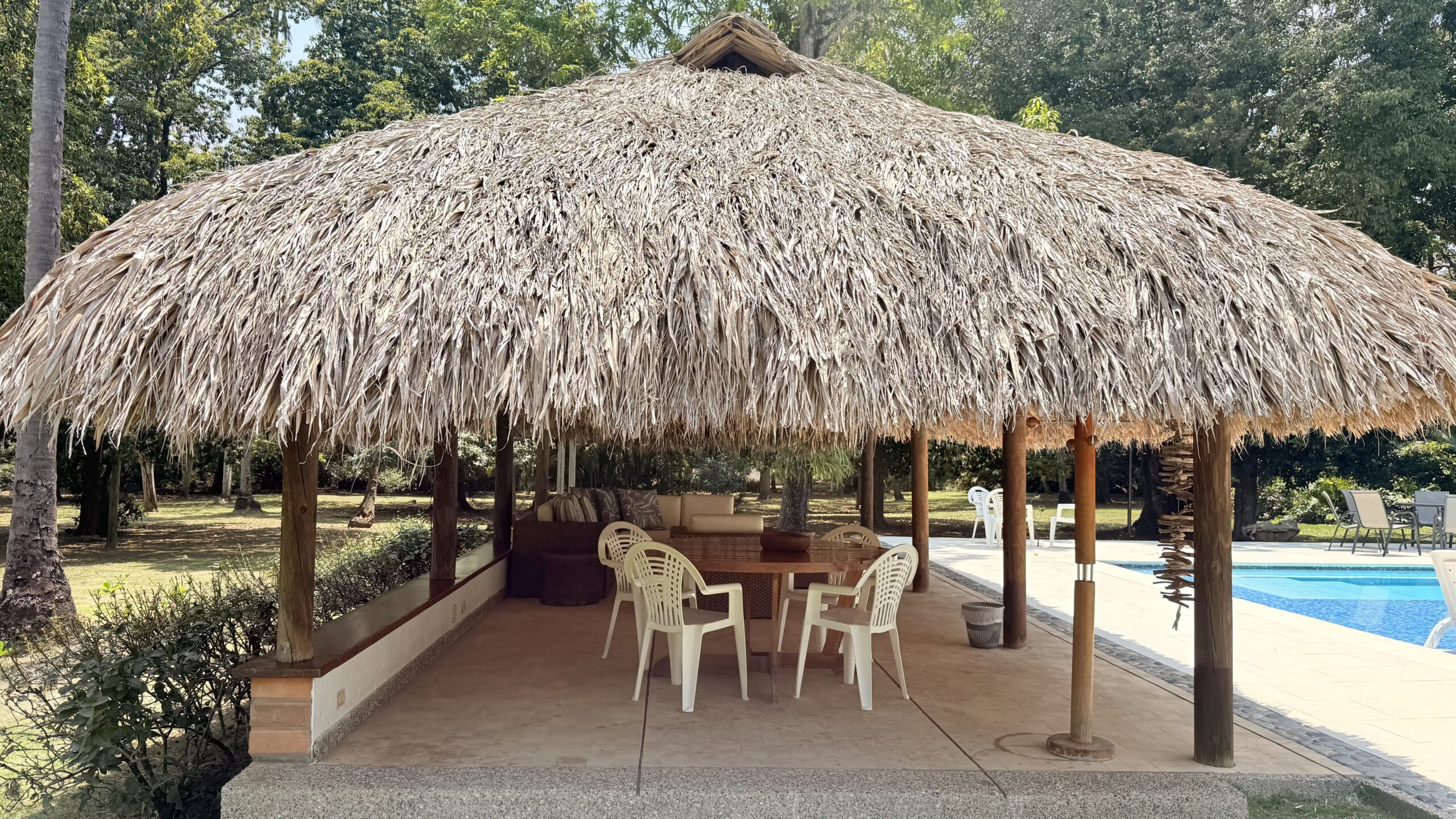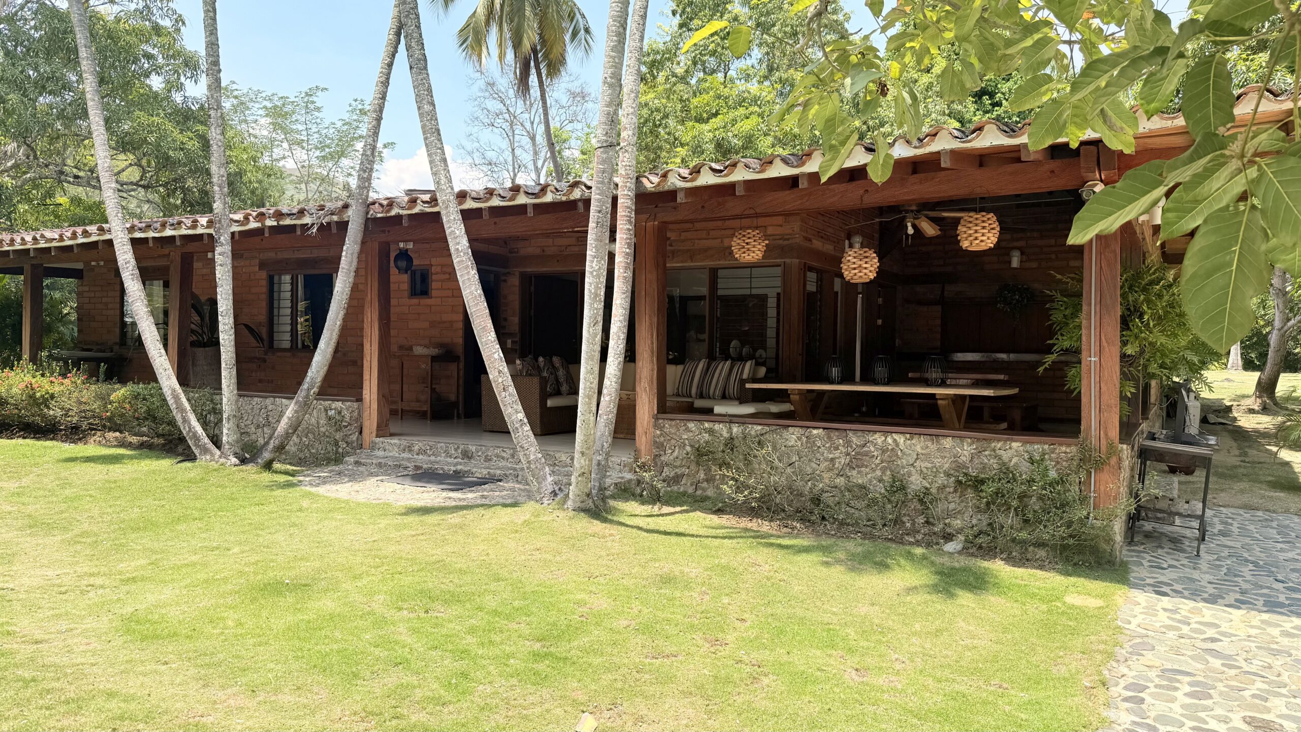 La Finca tiene una Casa muy agradable de u solo nivel, 5 alcobas con aire acondicionado, baño vestier, cocina integral, zona de ropas, sala comedor independiente, corredores, bellos jardines, kiosco en paja, piscina, árboles frutales en producción, arboles maderables, topografía totalmente plana.