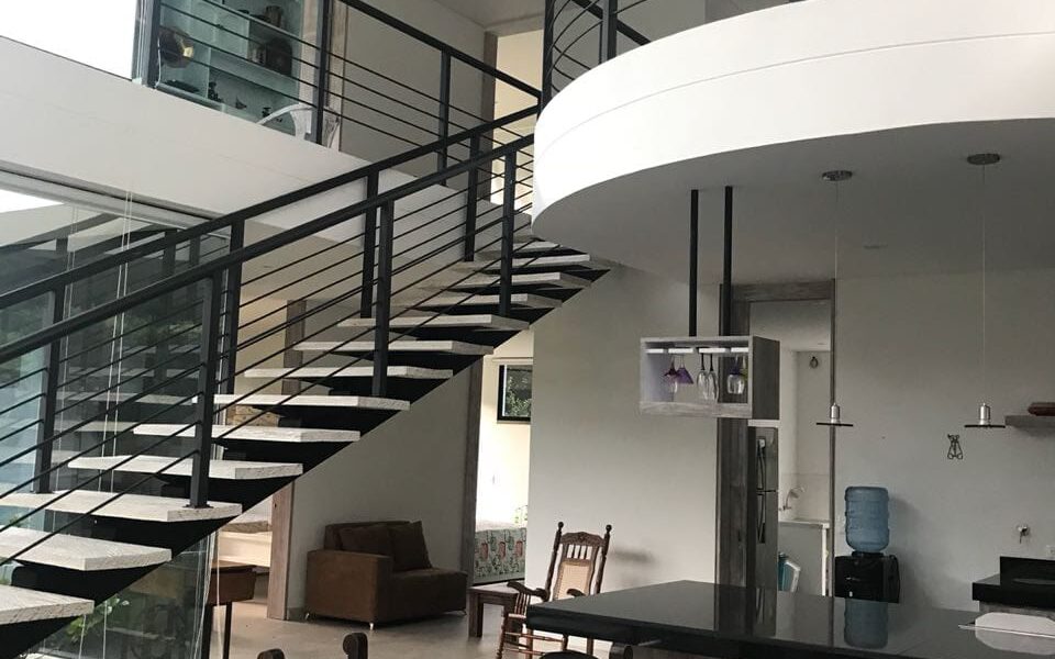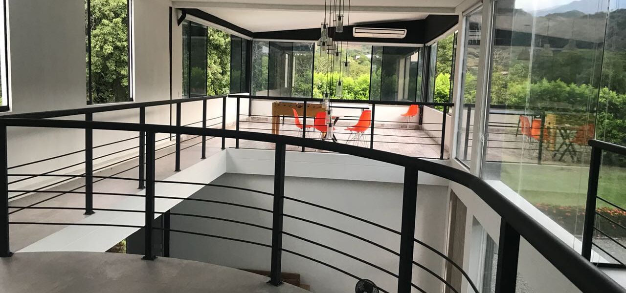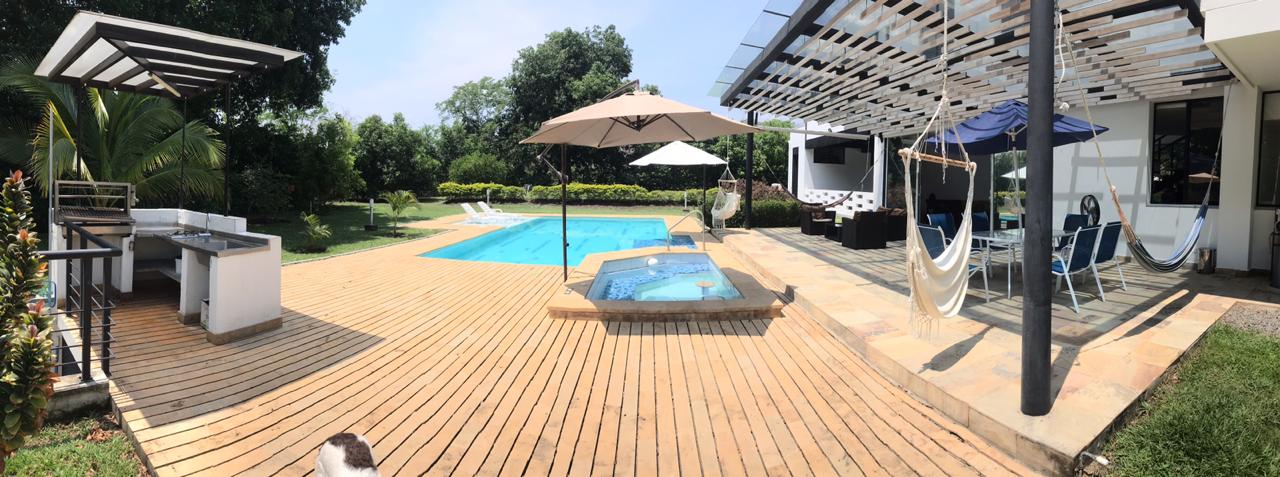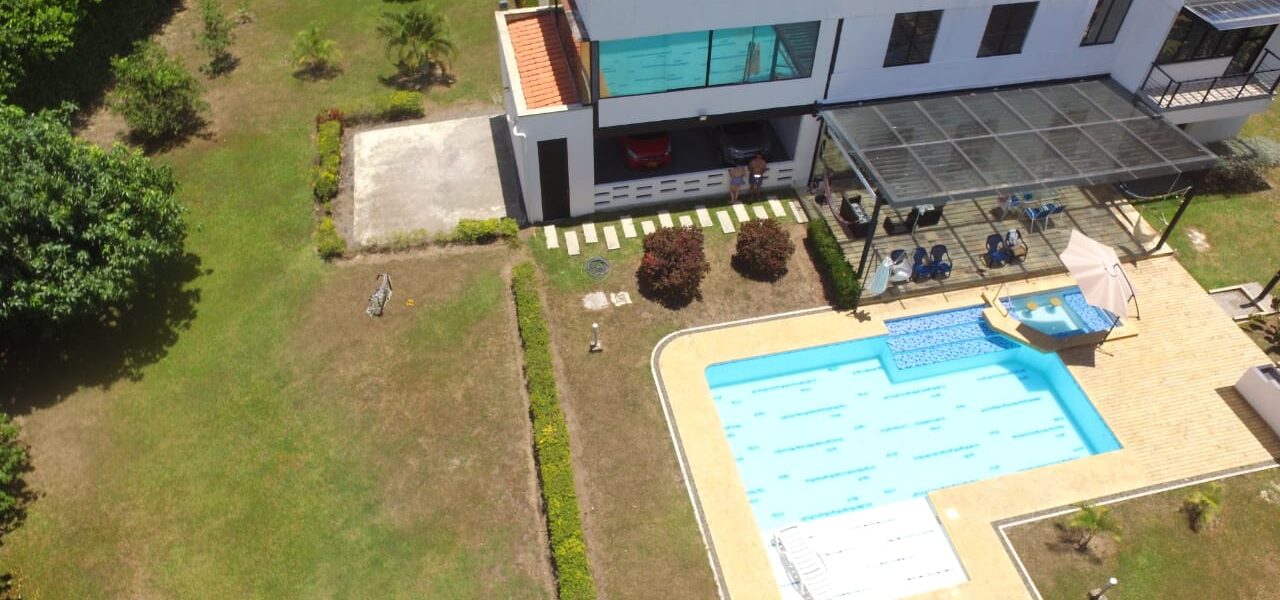 La Finca tiene una Casa moderna de dos niveles, cuenta con 5 alcobas amplias con aire acondicionado, baño y vestier, sala comedor independiente, cocina integral abierta con barra, zona de ropas, balcón y zona amplia de juegos.
