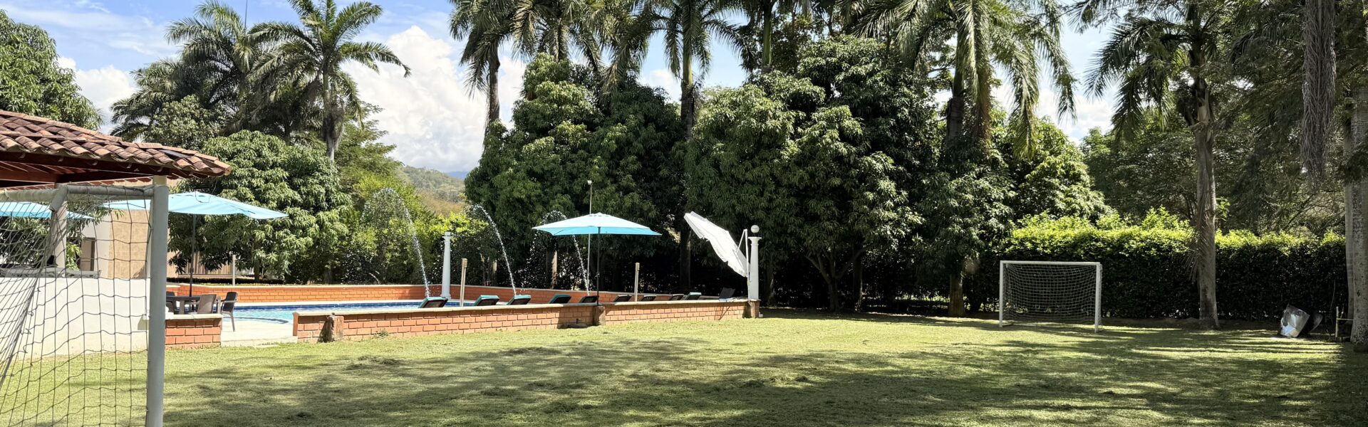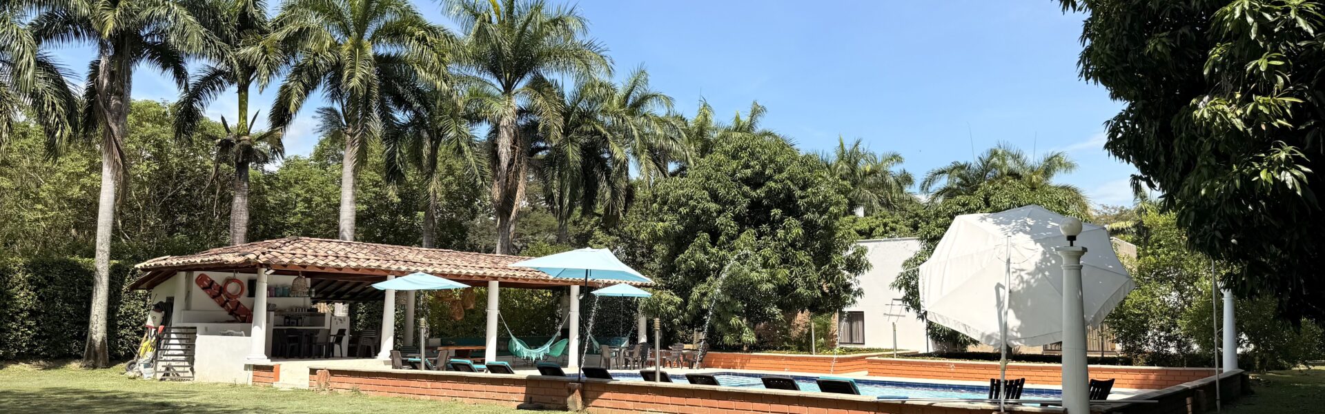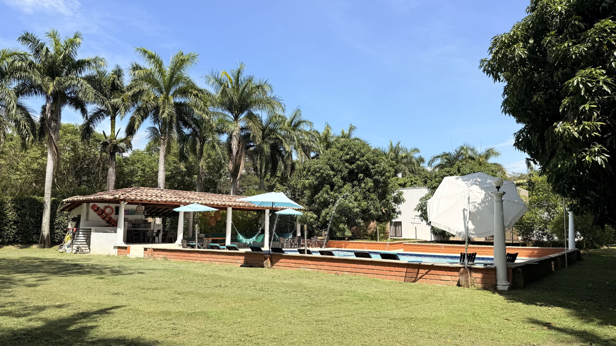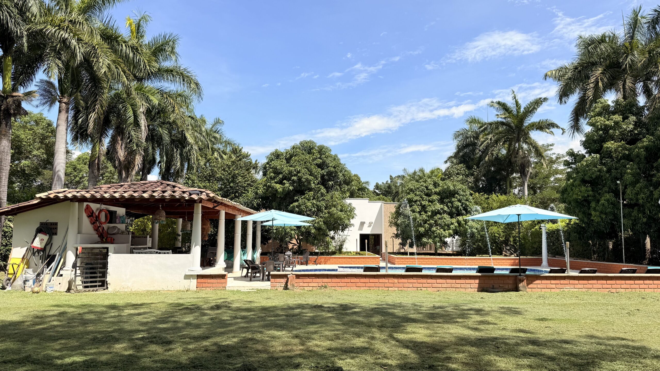 La casa es de un solo nivel, muy moderna, detalles de lujo , 5 alcobas con aire acondicionado, , 7 baños, cocina integral, zona de ropas, sala comedor independiente, kiosco externo con asadero, piscina muy amplia, zona verde, árboles frutales en producción, muy buenas aguas.