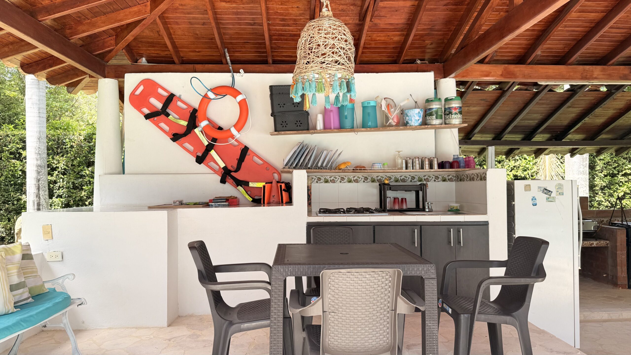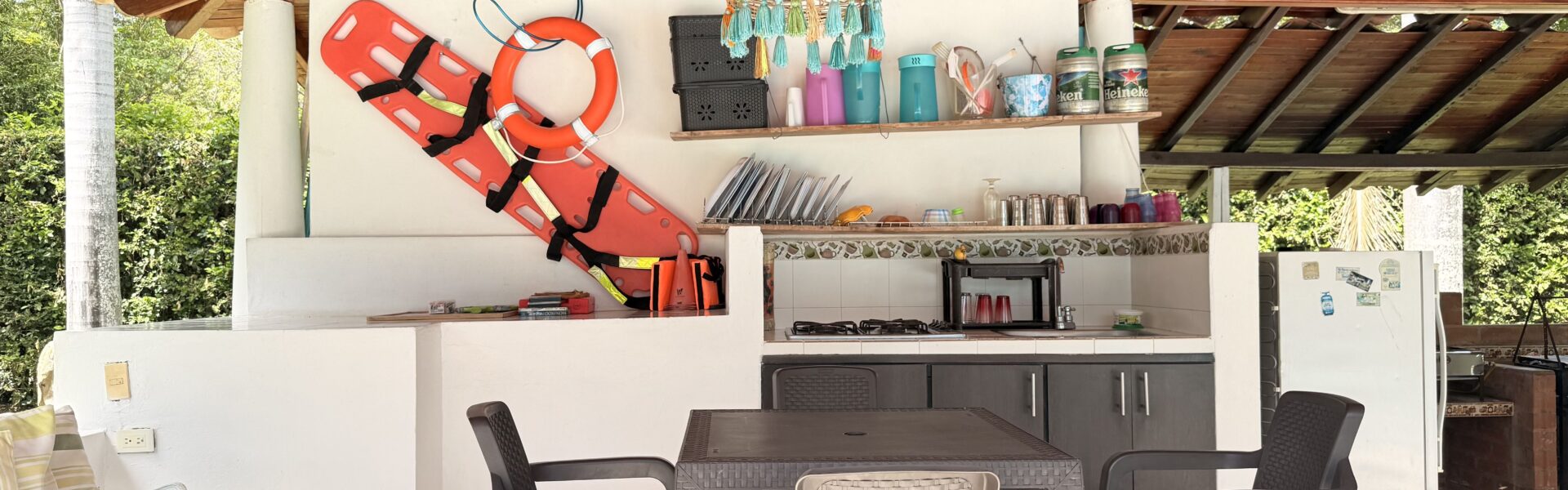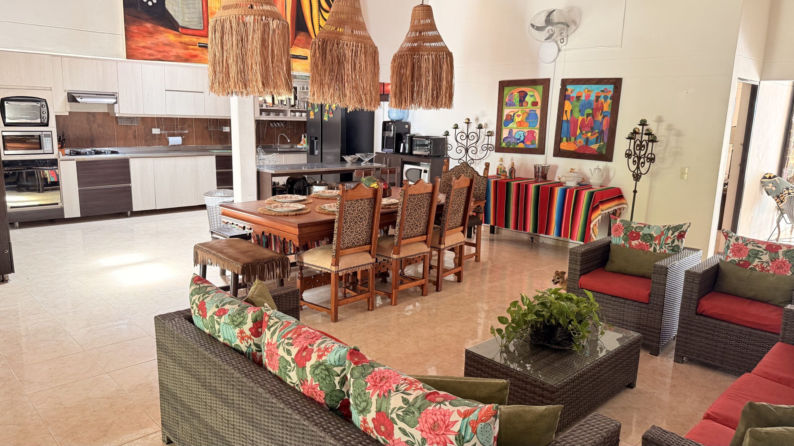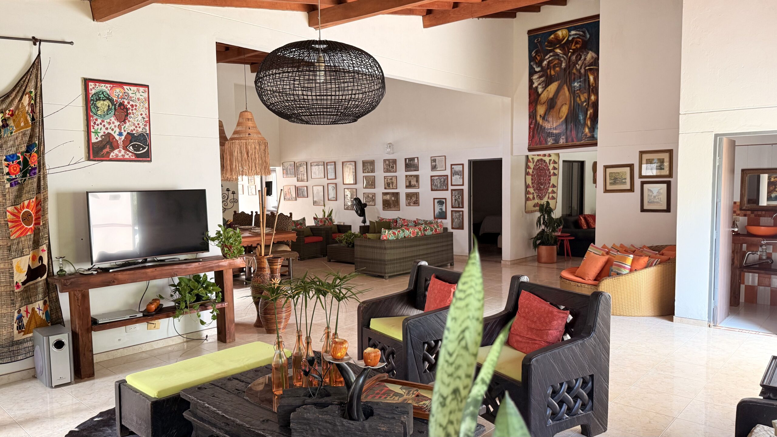 La casa es de un solo nivel, muy moderna, detalles de lujo , 5 alcobas con aire acondicionado, , 7 baños, cocina integral, zona de ropas, sala comedor independiente, kiosco externo con asadero, piscina muy amplia, zona verde, árboles frutales en producción, muy buenas aguas.