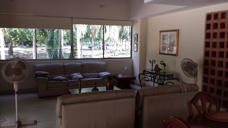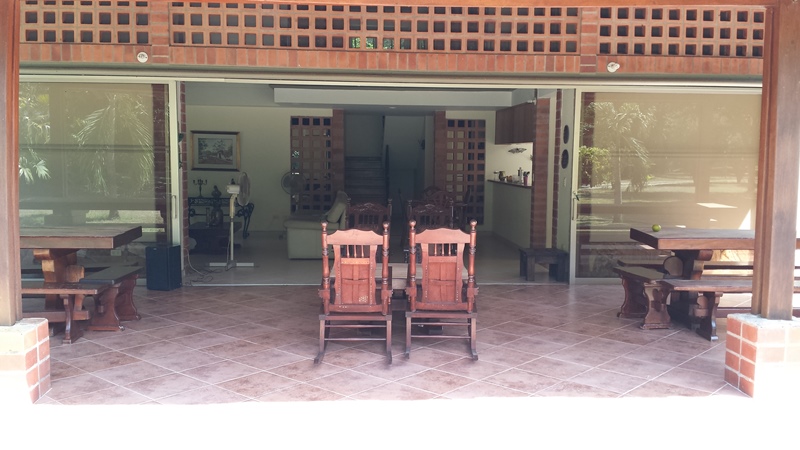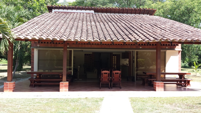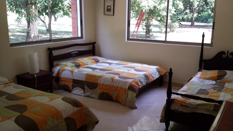 La Casa es moderna de dos niveles, con espacios amplios, 5 alcobas con aire acondicionado, baño y vestier, sala comedor independiente, cocina semi integral, zona de ropas, kiosco pequeño, piscina, casa de mayordomo, topografía totalmente plana, arboles maderables, y frutales en producción, agua de E.P.M.