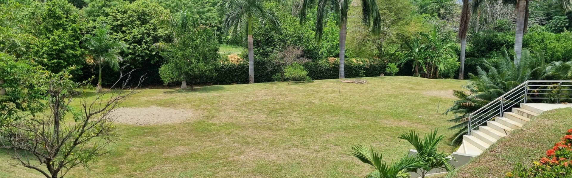 Tiene cancha de futbol, arboles frutales en produccion, bonita vista, topografia plana.