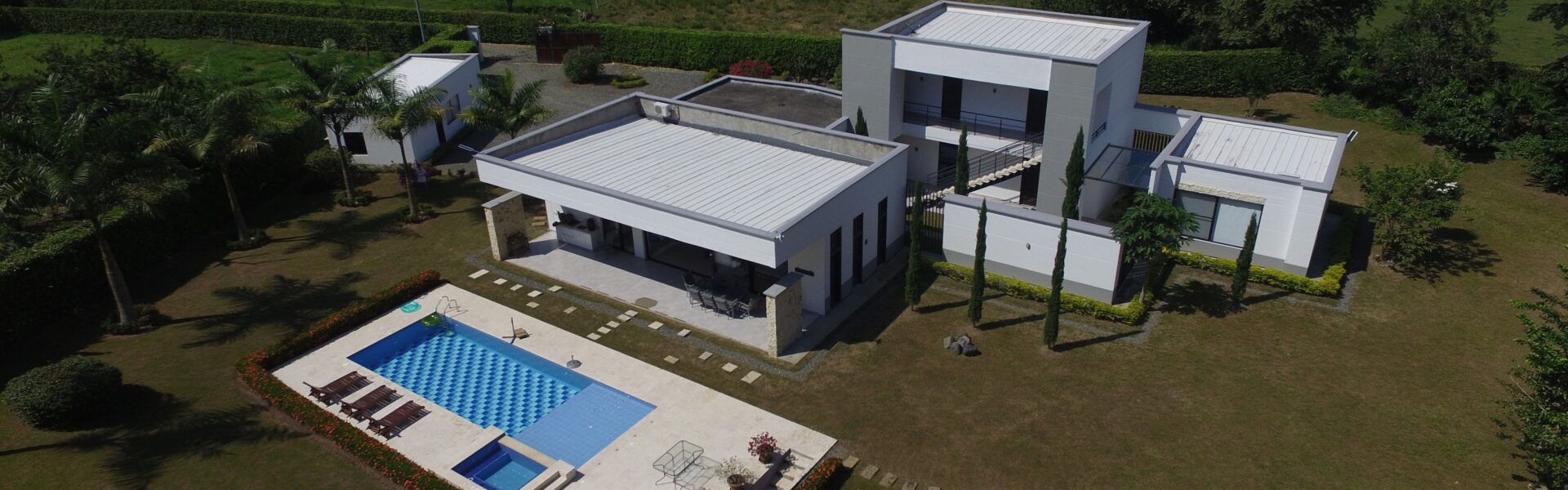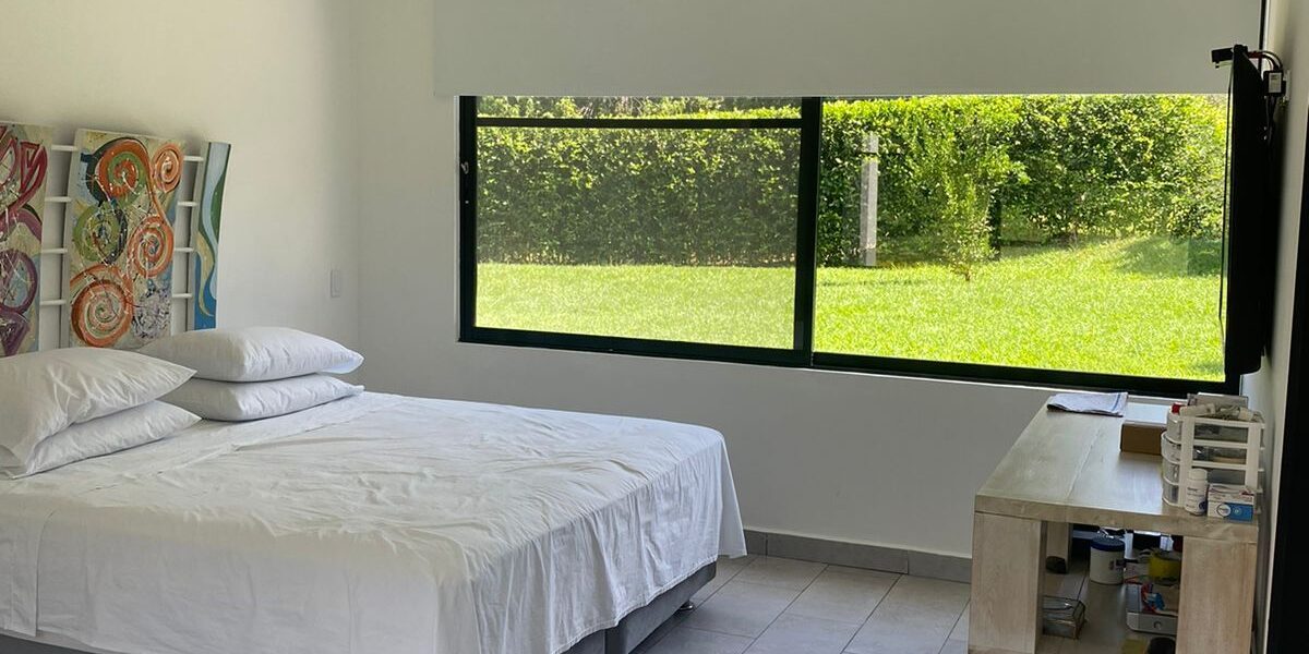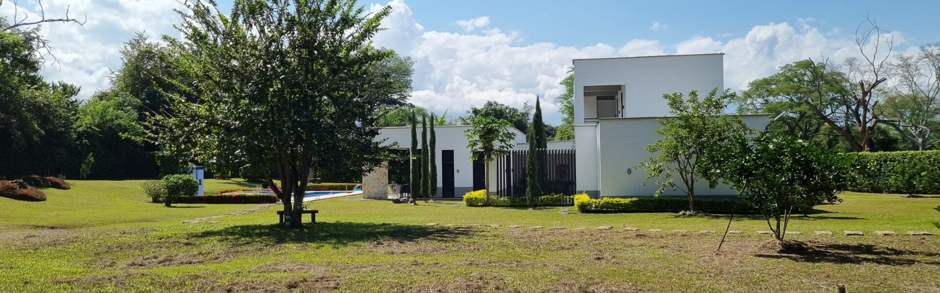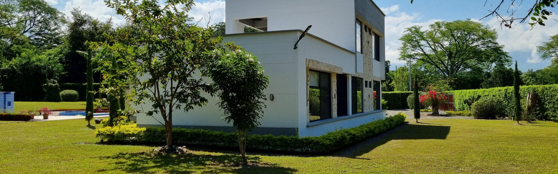 La Casa es de dos niveles  con muy buenos acabados, cuenta con 5 alcobas muy iluminadas con aire acondicionado, baño y vestier, mas la alcoba de la empleada domestica, sala comedor independiente, cocina integral abierta de lujo, zona humeda, balcon, patio central, estadero, piscina, yacuzzy, topografia plana, arboles frutales en produccion.