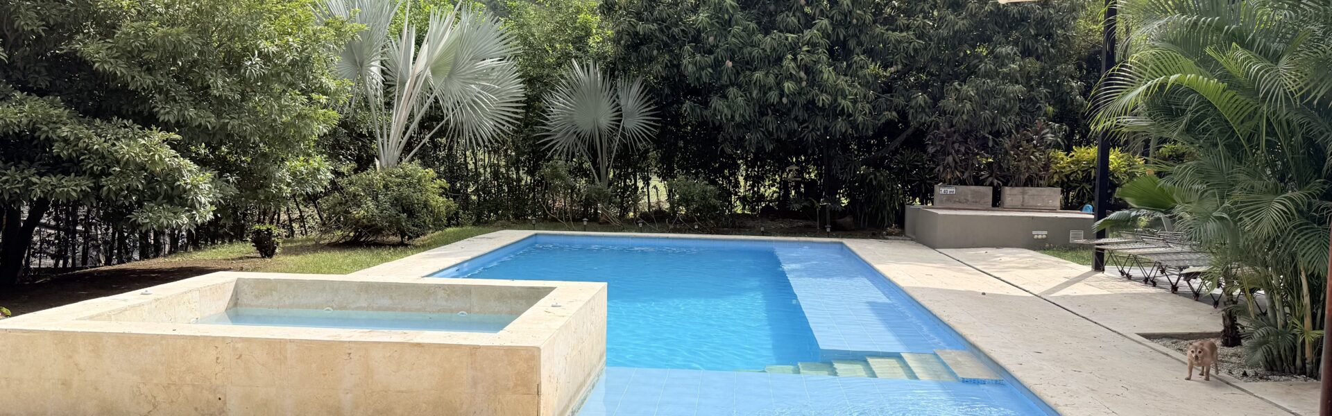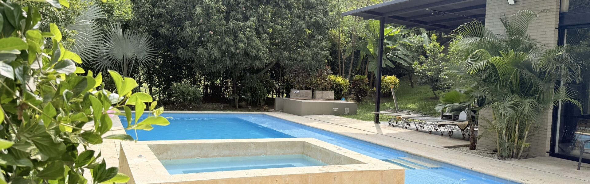 Cuenta con piscina con clorador salino, jacuzzy para 10 puestos, mesa auxiliar, portería 24 horas, topografía plana, árboles frutales en producción.