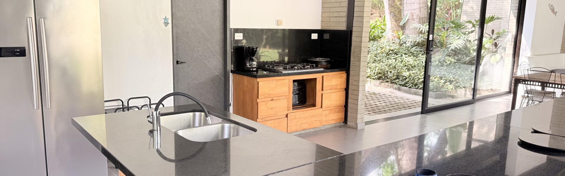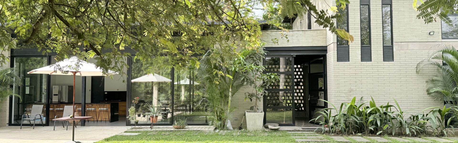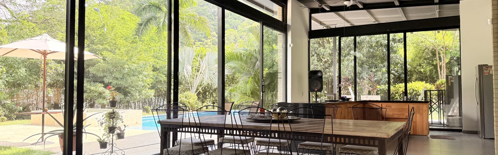La Finca tiene una Casa moderna y muy cómoda de dos niveles, en estructura metálica, espacios amplios, con 4 alcobas con aire acondicionado y ventiladores de techo, baño y vestier ,sala comedor, cocina integral, zona de ropas,bellos jardines.
