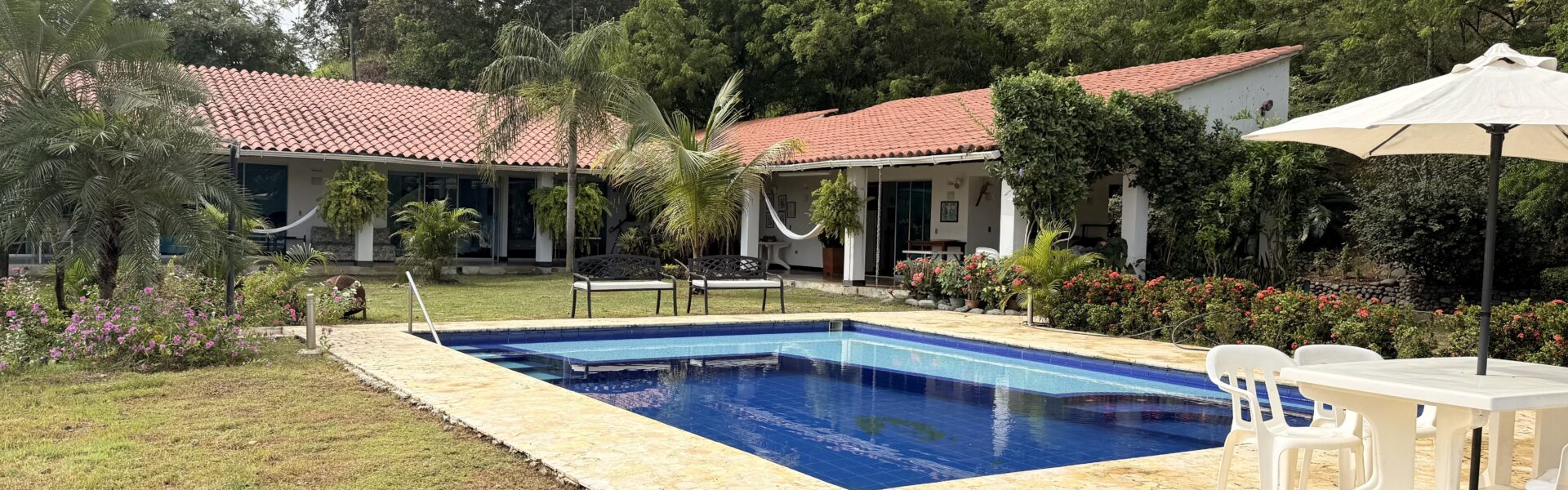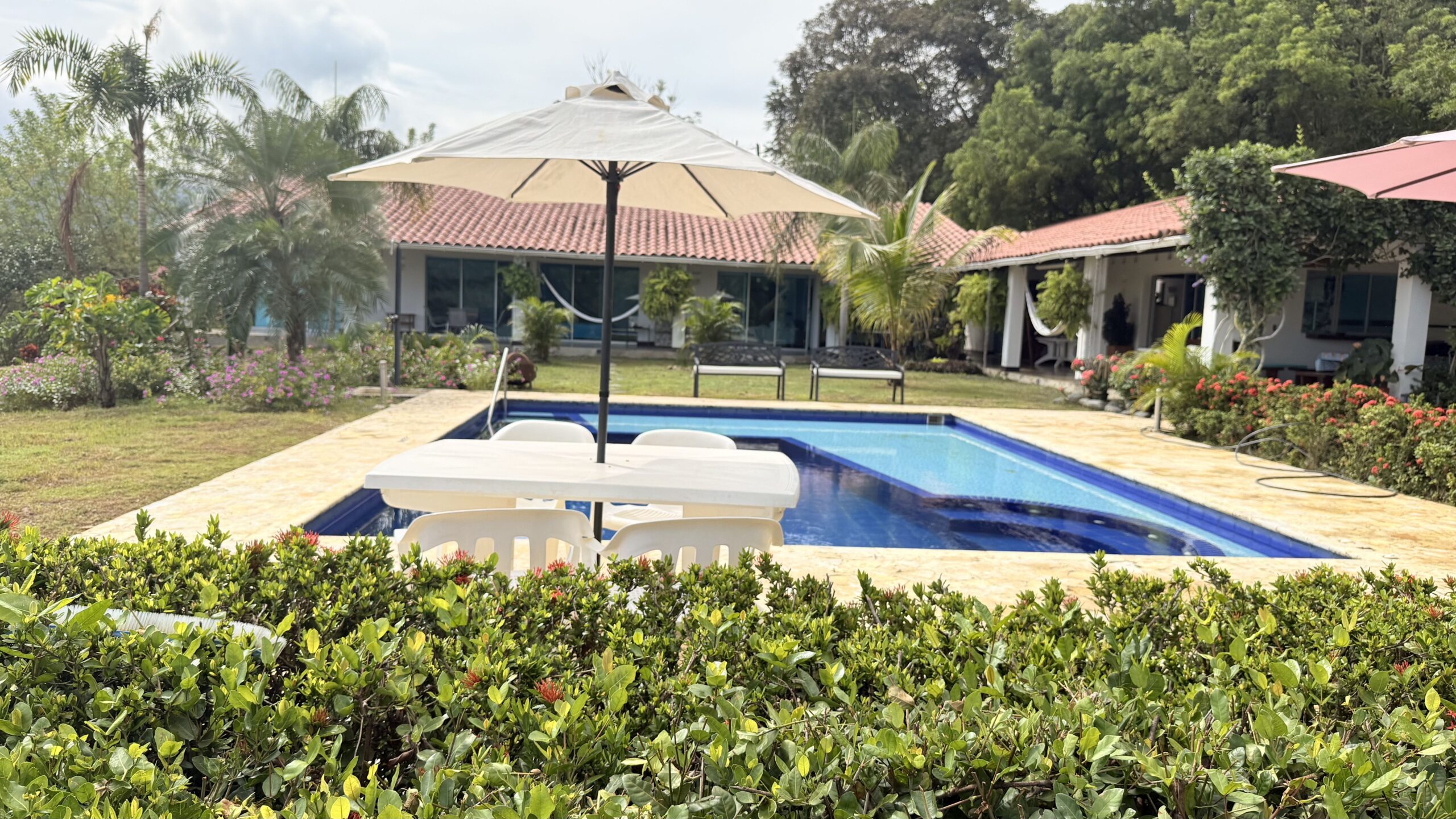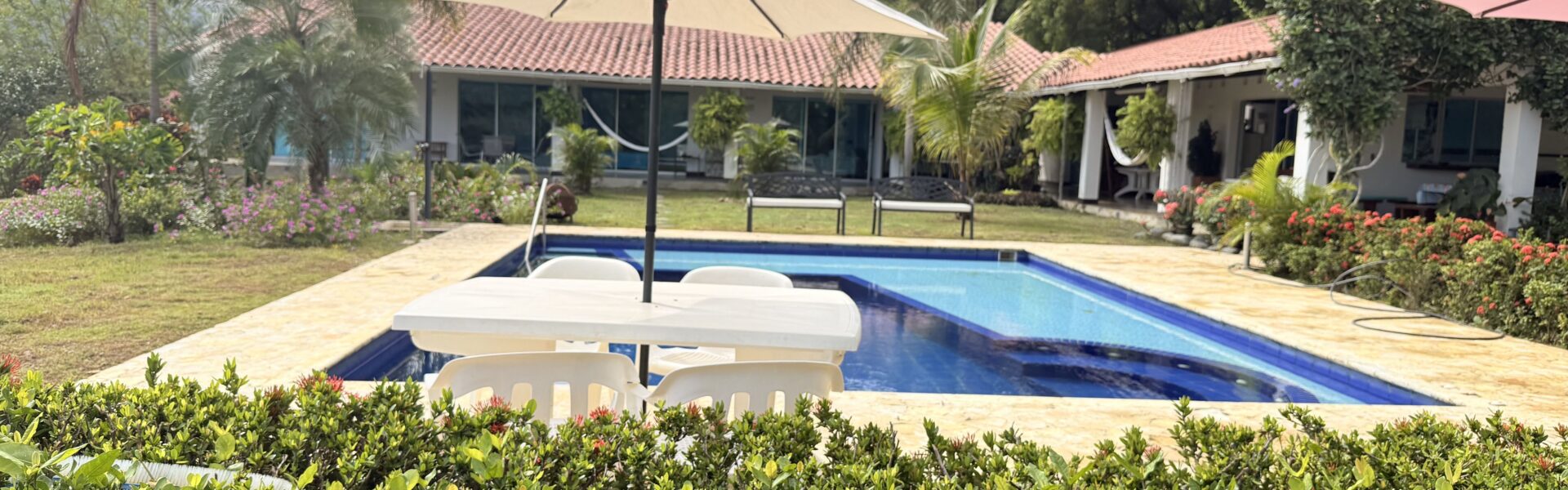 La Finca tiene una Casa principal muy comoda y agradable de un solo nivel, espacios muy amplios, bellos jardines, cuenta con 6 alcobas con aire acondicionado, baño y Vestier, cocina integral amplia, zona de ropas, sala comedor independiente, cuarto de despensa, corredores internos .