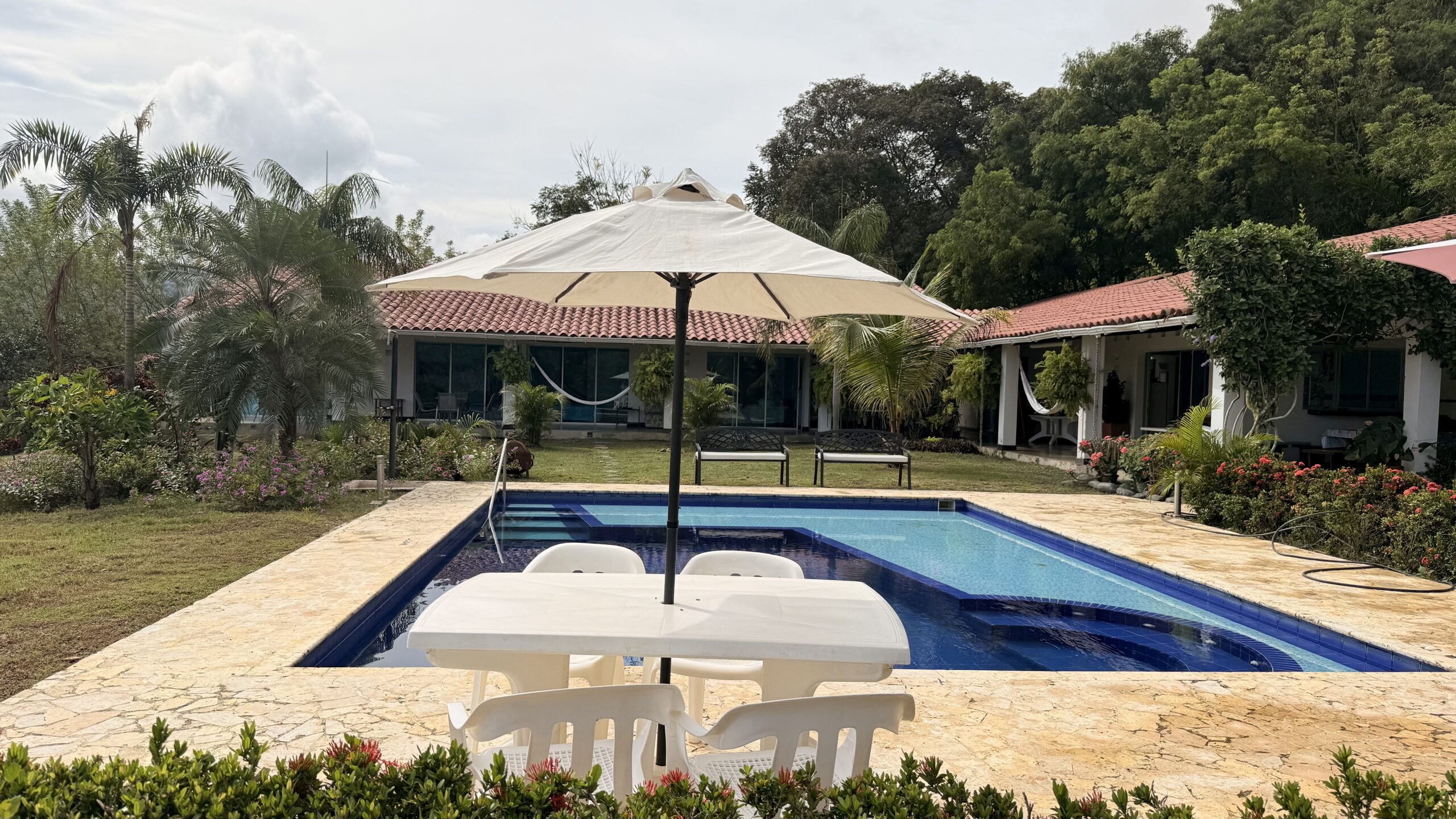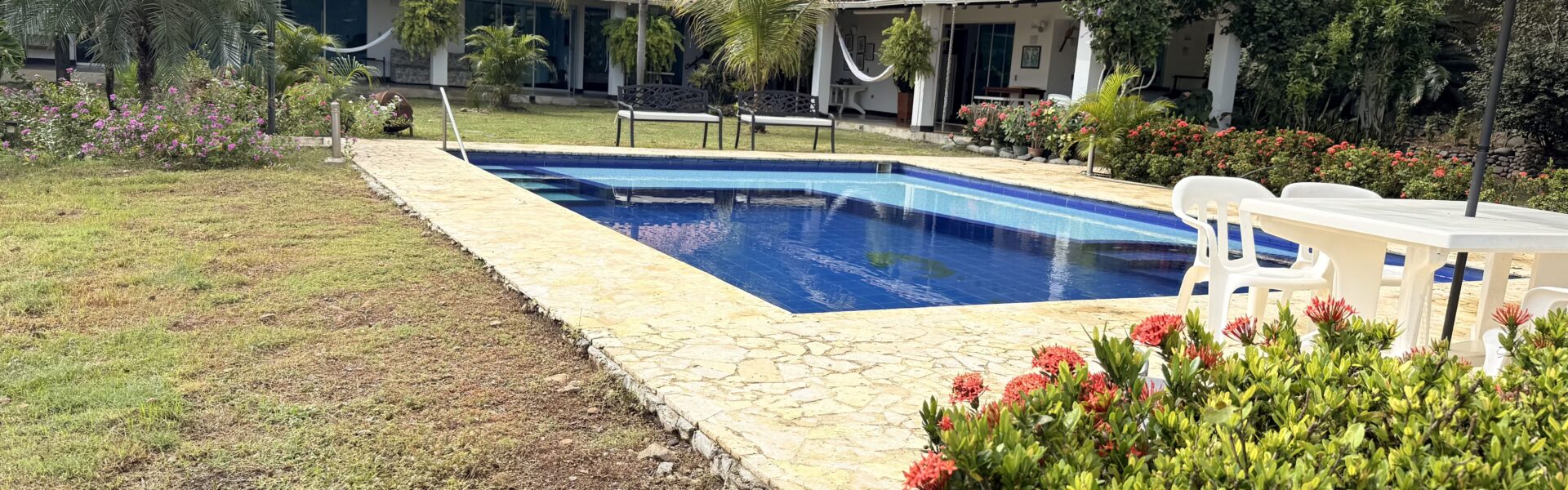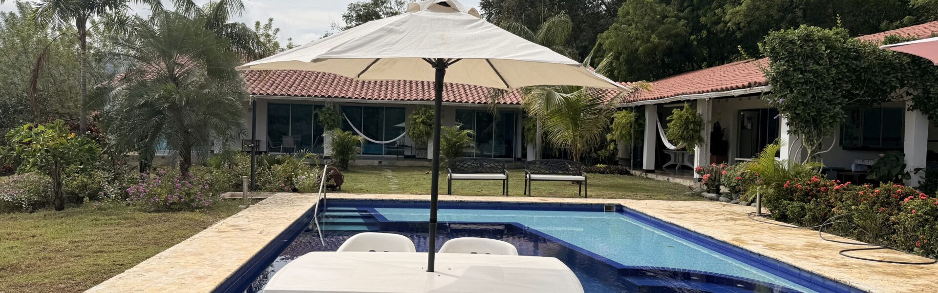 La Finca tiene una Casa principal muy comoda y agradable de un solo nivel, espacios muy amplios, bellos jardines, cuenta con 6 alcobas con aire acondicionado, baño y Vestier, cocina integral amplia, zona de ropas, sala comedor independiente, cuarto de despensa, corredores internos .