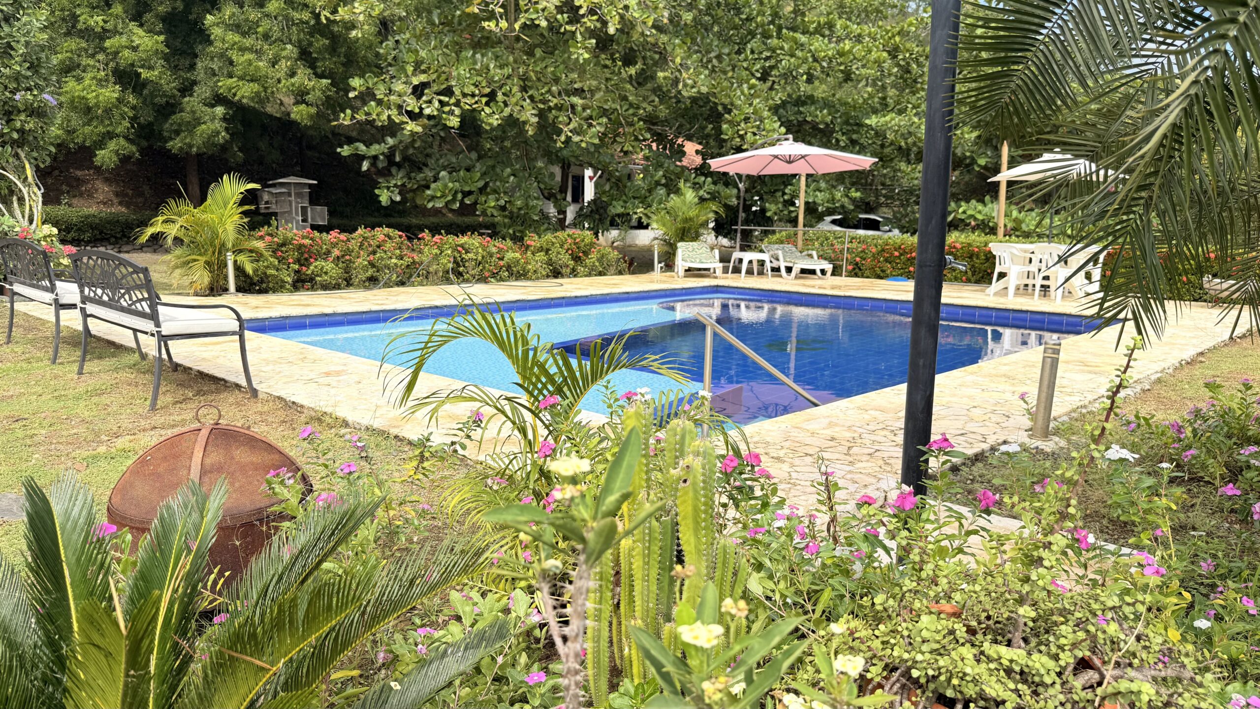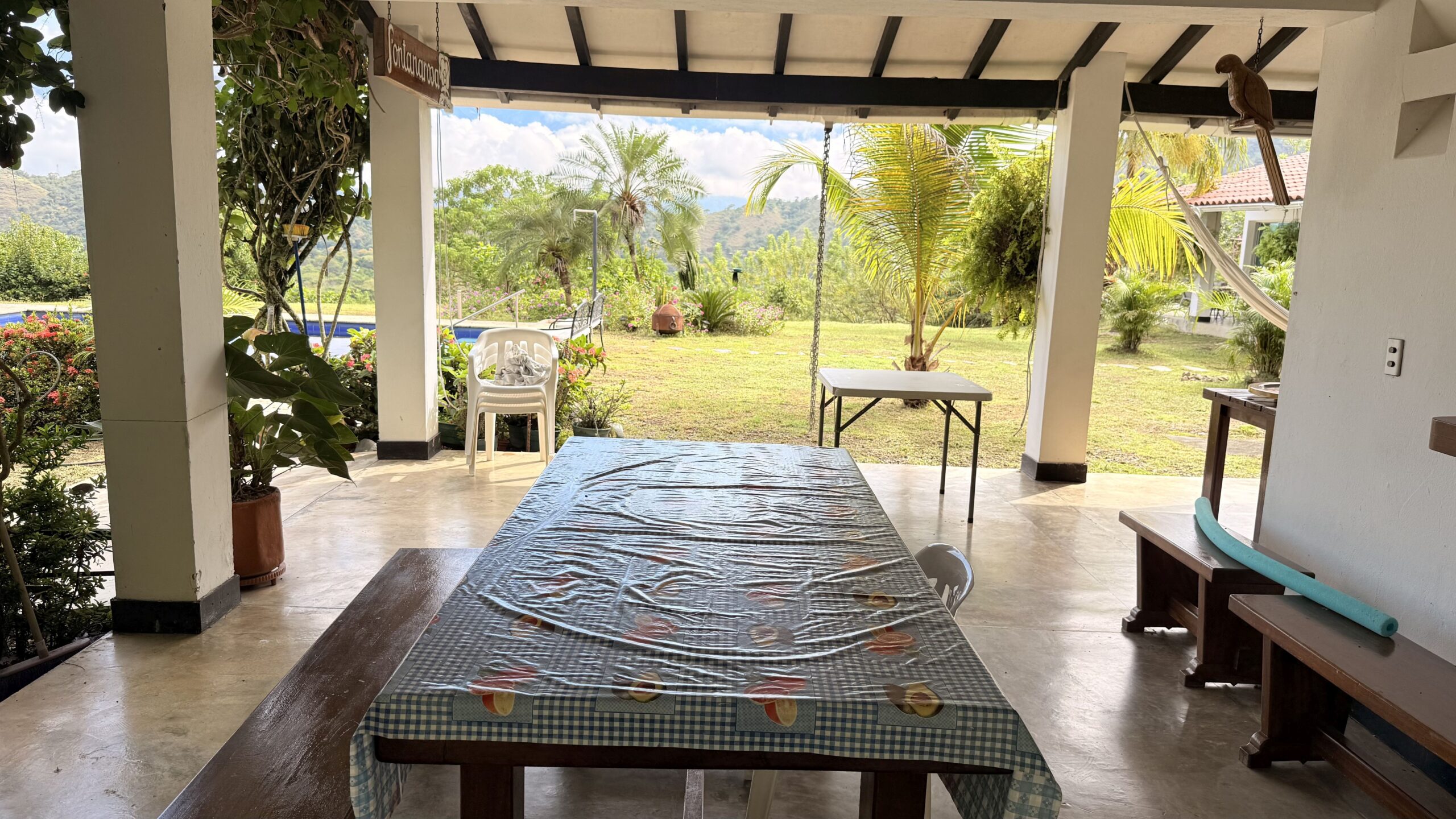 La propiedad cuenta con una piscina de 48 metros cuadrados con chorros y Jacuzy, agua de E.P.M, 4 tanques de almacenamiento de agua de 2.000 litros, arboles frutales en producción, casa de mayordomo, topografía plana y ondulada con la mejor vista al puente.